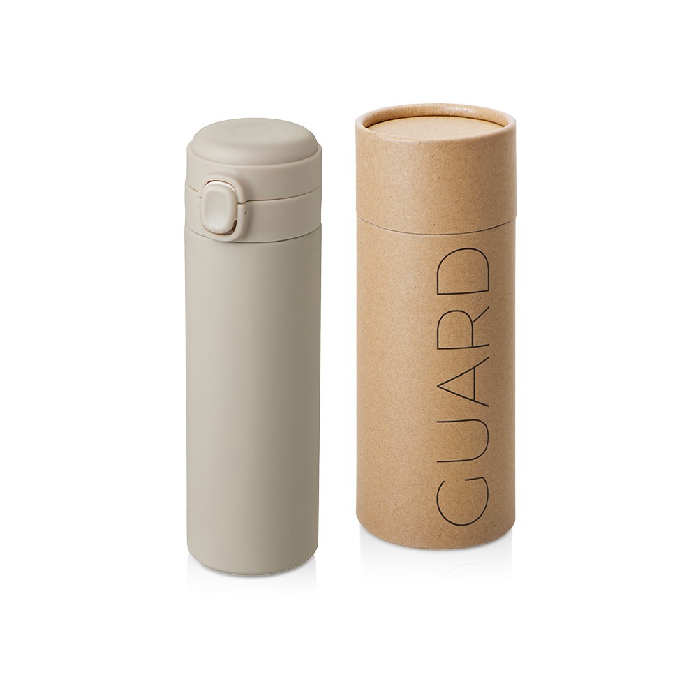 • Вакуумная термокружка Waterline c кнопкой «Guard», 400 мл, тубус, бежевый
