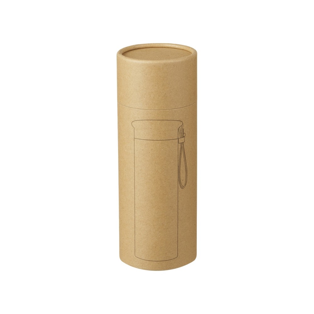 Термос герметично завинчивается на крышку, оснащенную съемным ремешком из качественной ПУ кожи. Крышка имеет прорезиненное покрытие, что создает интересное сочетание текстур в рамках одной модели. Корпус имеет элегантную рельефную поверхность с антискользящим эффектом.