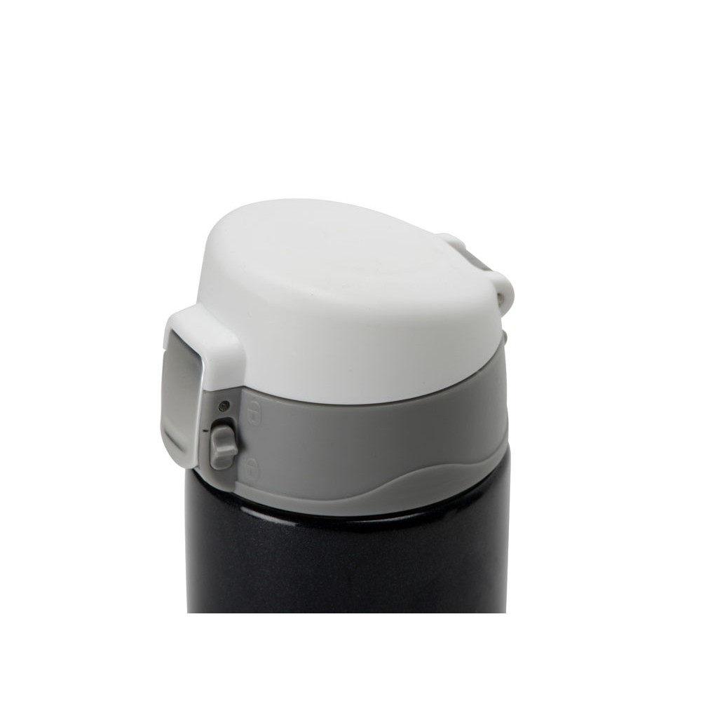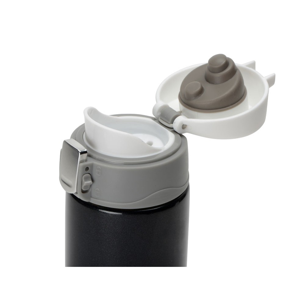 Благодаря своим габаритам термокружка легко поместится в сумочку или портфель, а система блокировки крышки защитит содержимое, не дав напитку пролиться.