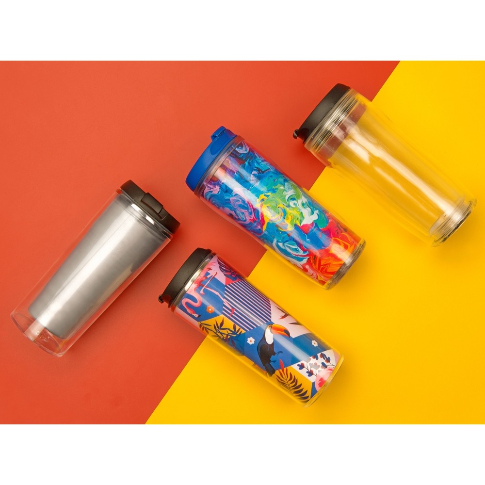 Подобрать классную и удобную термокружку очень просто! Термокружка "Remix" на 400 мл подойдет для персонализации и продвижения бренда компании, мероприятия или акции. Вы можете вставить в кружку цветную вкладку с оригинальным дизайном, корпоративной символикой или постером. Внутри пластиковой кружки находится стальная колба, благодаря которой температура напитка сохраняется до 3 часов.