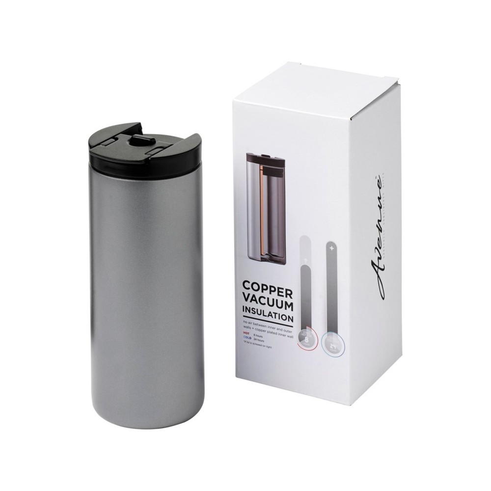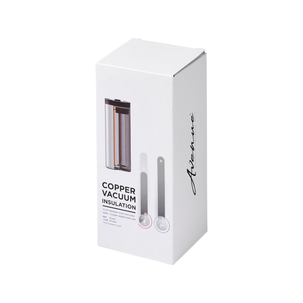 Вакуумный термостакан Lebou с медным покрытием 360 мл. Компактный и долговечный термостакан идеально подходит для работы и путешествий. Изготовлен из нержавеющей стали с двойными стенками и вакуумной, медной изоляцией, что позволяет сохранять температуру горячих напитков до 8 часов, а холодных — до 24 часов. Крышка имеет функцию блокировки. Кроме того, конструкция препятствует образованию конденсата на внешней стороне стакана. Объем — 360 мл. Представлена в подарочной коробке Avenue. Нержавеющая сталь, ПП-пластик.