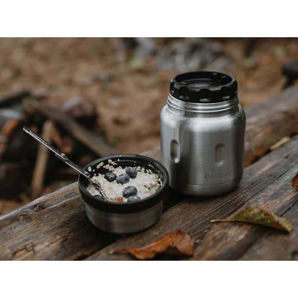 Jerrycan — это термос для еды с удобным широким горлом и встроенной складной ложкой. Термос объемом 470 мл сохраняет тепло до 10 часов, холод - до 15 часов.