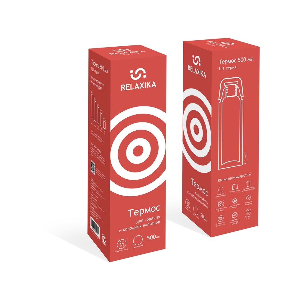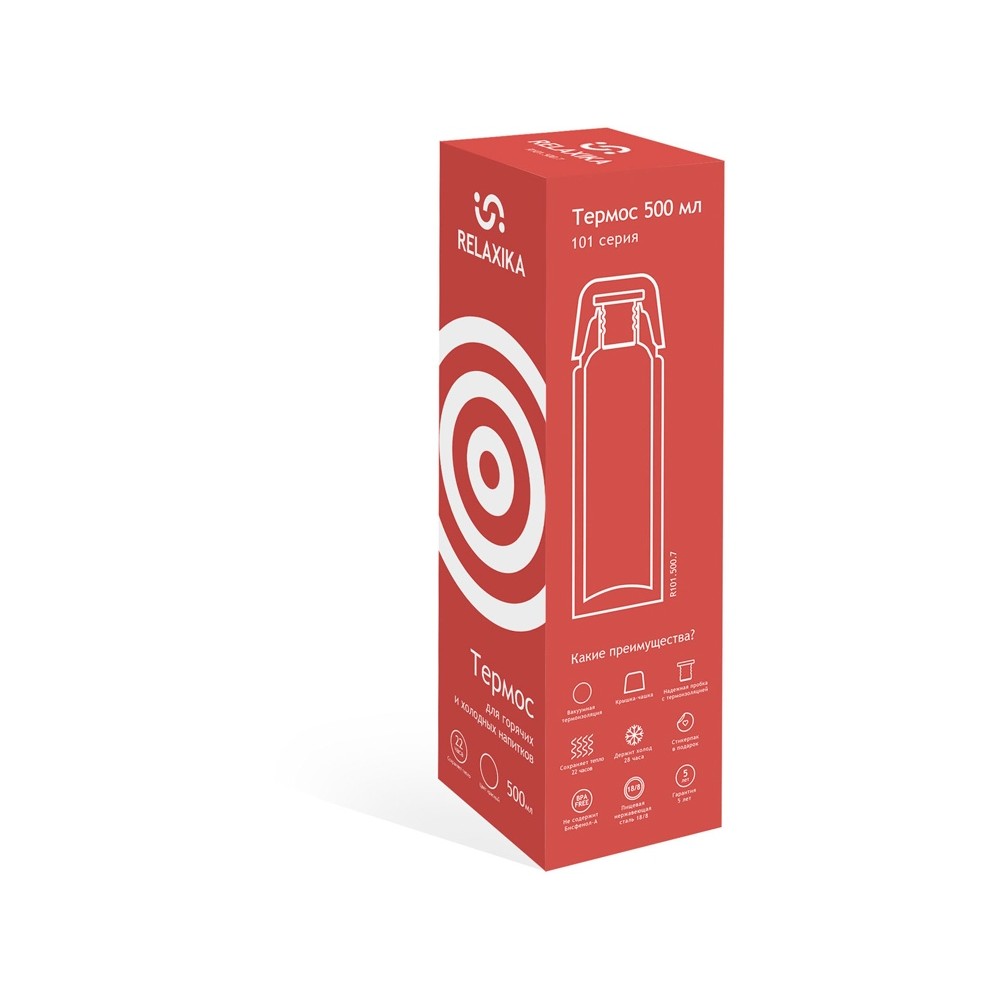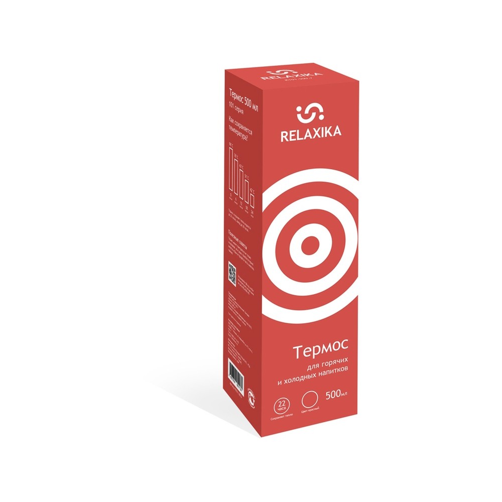 Классический термос Relaxika черного цвета с высокими показателями удержания температуры напитка для походов, путешествий, спорта и ежедневного использования. Прочные двойные стенки из высококачественной нержавеющей стали 18/8 с вакуумной изоляцией гарантируют, что ваш напиток останется холодным в течение 28 часов и горячим до 22 часов. Этот материал не только прочен, но и гигиеничен, не выделяет никаких вредных для здоровья веществ. Ваши напитки сохраняет естественный вкус и не приобретут посторонний запах.
