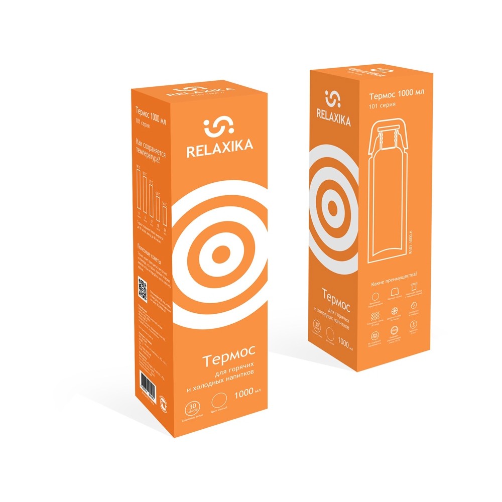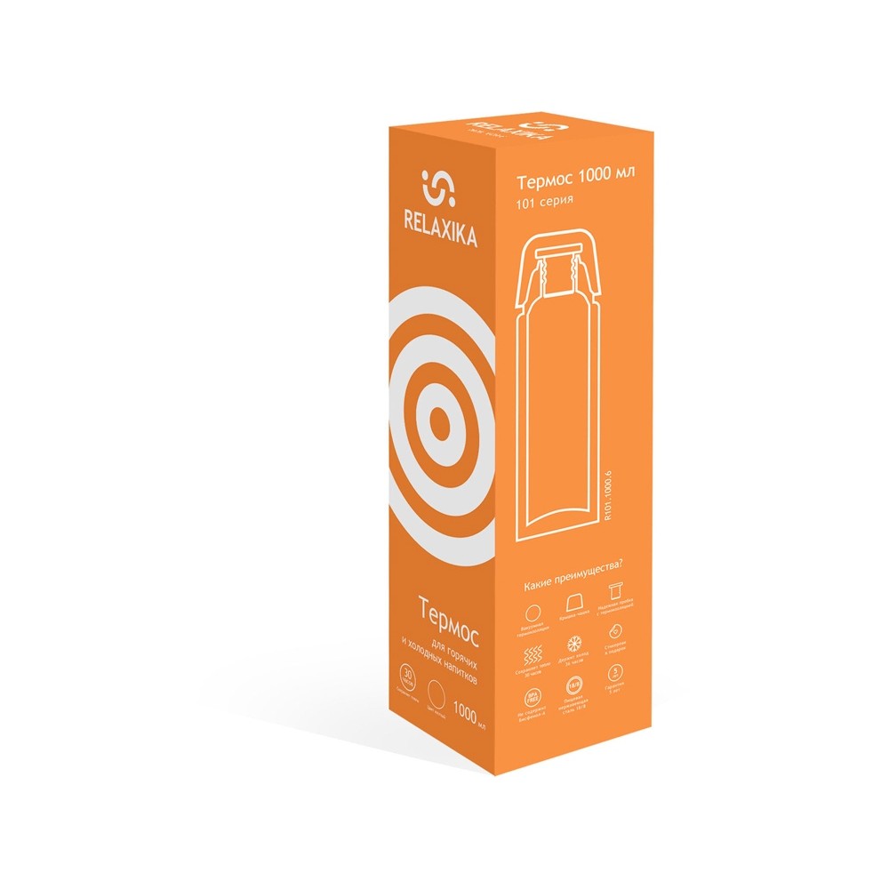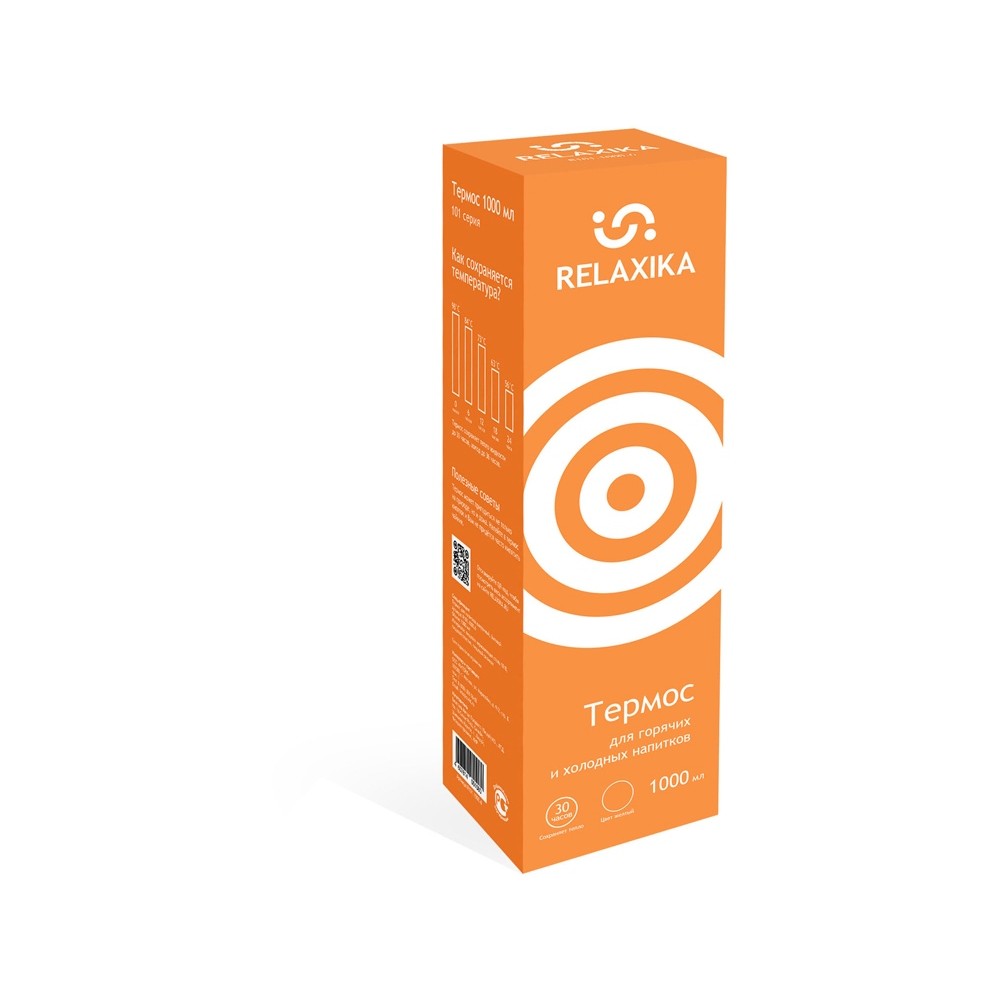Классический термос Relaxika черного цвета с высокими показателями удержания температуры напитка для походов, путешествий, спорта и ежедневного использования. Прочные двойные стенки из высококачественной нержавеющей стали 18/8 с вакуумной изоляцией гарантируют, что ваш напиток останется холодным в течение 36 часов и горячим до 30 часов. Этот материал не только прочен, но и гигиеничен, не выделяет никаких вредных для здоровья веществ. Ваши напитки сохраняет естественный вкус и не приобретут посторонний запах.