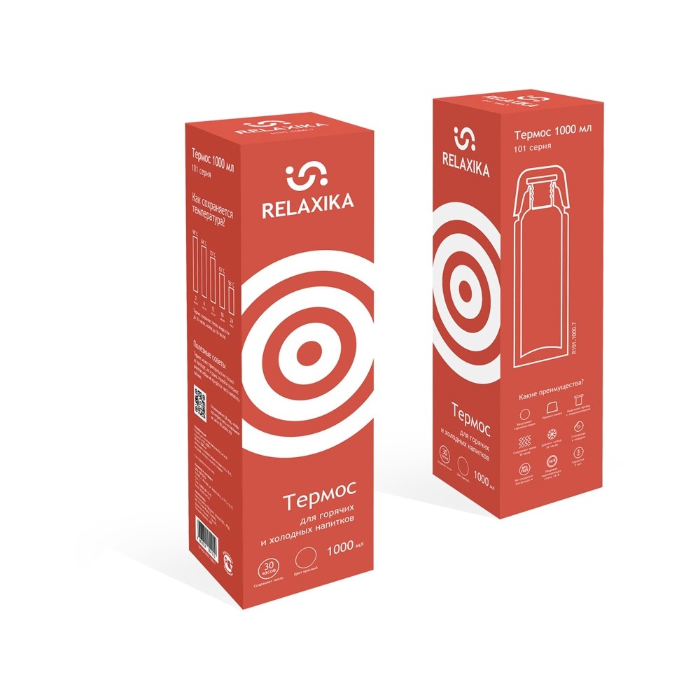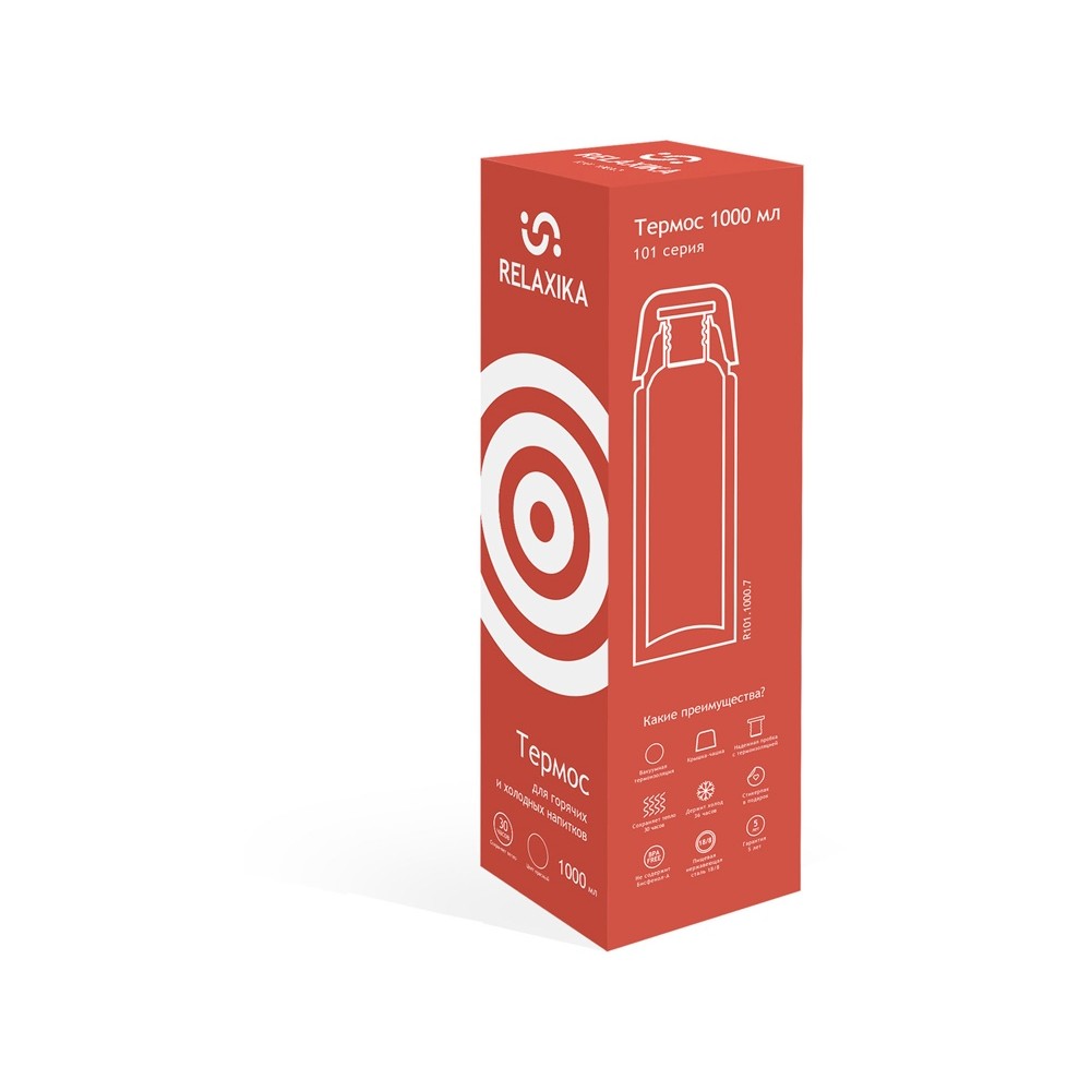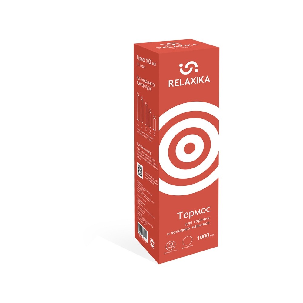Классический термос Relaxika черного цвета с высокими показателями удержания температуры напитка для походов, путешествий, спорта и ежедневного использования. Прочные двойные стенки из высококачественной нержавеющей стали 18/8 с вакуумной изоляцией гарантируют, что ваш напиток останется холодным в течение 36 часов и горячим до 30 часов. Этот материал не только прочен, но и гигиеничен, не выделяет никаких вредных для здоровья веществ. Ваши напитки сохраняет естественный вкус и не приобретут посторонний запах.