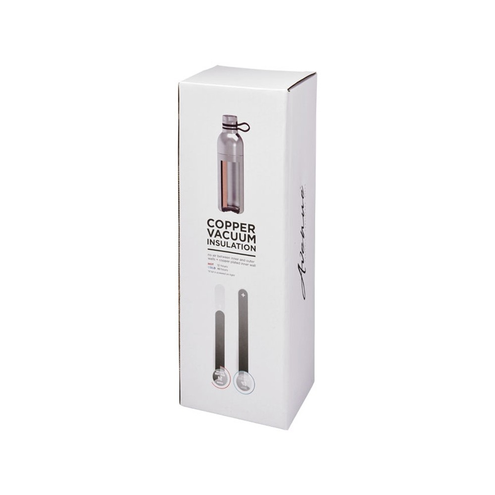 Медная спортивная бутылка с вакуумной изоляцией Koln объемом 590 мл. Двустенная вакуумная конструкция из нержавеющей стали с медной изоляцией позволит вашему напитку оставаться холодным в течение 48 часов и горячим — как минимум 12 часов. Кроме того, конструкция препятствует образованию конденсата на внешней стороне бутылки. Оснащена закручивающимся колпачком и крышкой из нержавеющей стали с удобной силиконовой петлей-держателем. Конструкция с двойным отверстием для легкой очистки и заполнения. Объем — 590 мл. Упакована в подарочной коробке Avenue. Нержавеющая сталь.