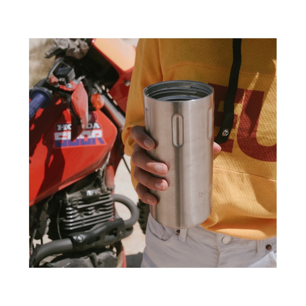 Универсальный вакуумный термос. Объем 590 мл, сохраняет тепло до 8 часов, холод — до 16 часов. Съемная крышка Handle Cap выполнена из безопасного пластика BPA-free, силиконовые уплотнители — из пищевого силикона. Крышка имеет металлическое основание, которое не накапливает запахи и защищает напиток от контакта с пластиком. Крышка также обеспечивает 100% герметичность изделия.