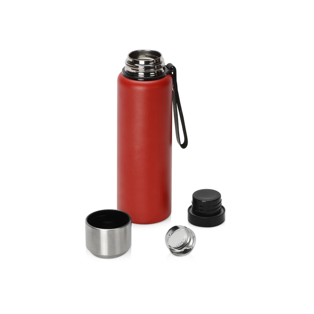 Вакуумный термос c двойными стенками из «пищевой» нержавеющей стали 304 марки для небольших путешествий и отдыха на природе. Надежно удерживает тепло и холод в течение 24 часов. Крышку можно использовать в качестве чашки. В комплекте имеется съемное ситечко из нержавеющей стали. Имеется прочный и удобный ремешок для переноски. Корпус покрыт специальной порошковой краской для надежного хвата и защиты от царапин. Объем 800 мл.