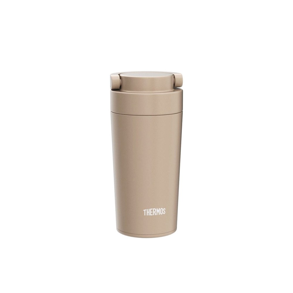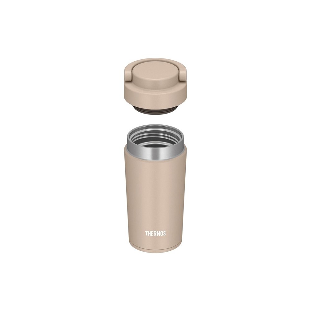 Термоизоляция защищает корпус от нагрева при хранении горячих напитков и от появления конденсата от холодных. Поэтому термостакан безопасно держать в руках и ставить на любые поверхности. Современный стиль термостакану придаёт эргономичная форма и покрытие песочного цвета, отличающегося износостойкостью. Компактный термостакан совместим с большинством кофемашин и подходит для размещения в автомобильном подстаканнике.