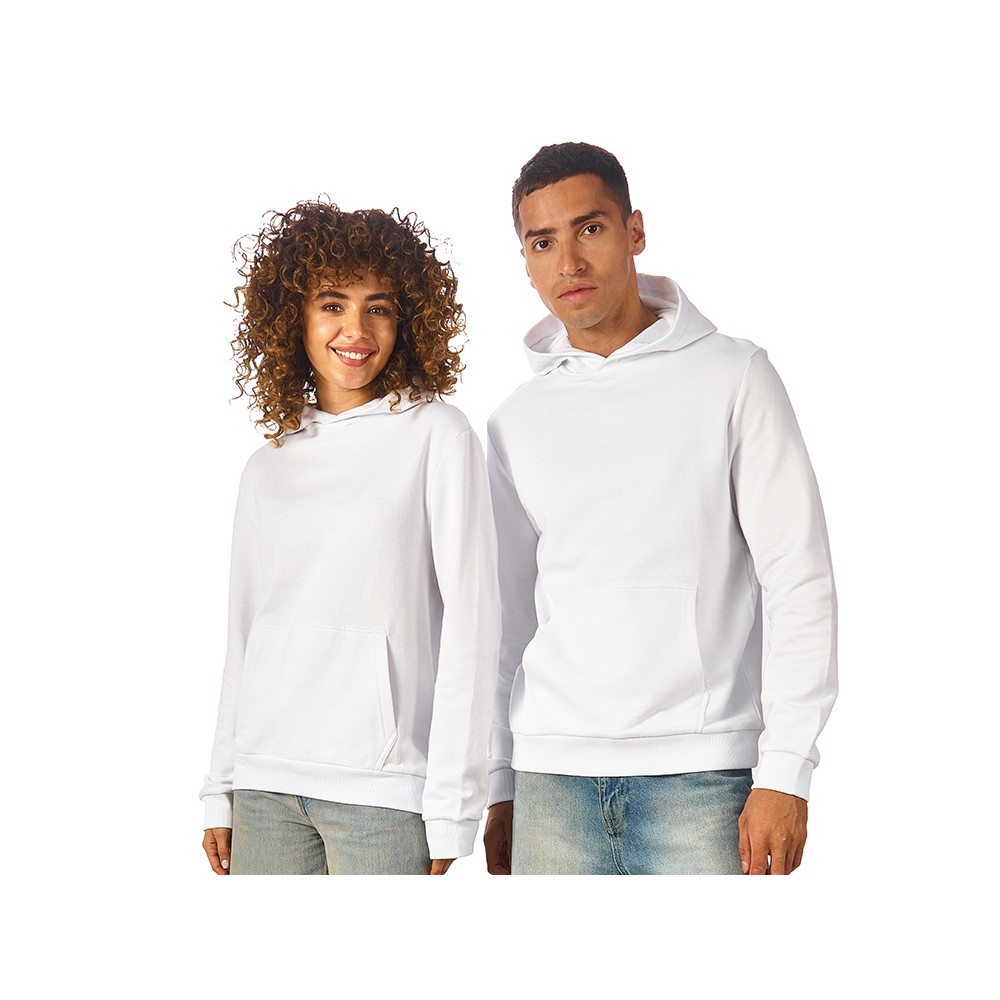 Толстовка с капюшоном (худи) из плотного хлопкового 3х ниточного футера. В капюшоне подкладка в тон, а горловина спинки дополнительно укреплена тесьмой с выделкой «елочка». Капюшон без шнурков – ничего не отвлекает от вашего брендирования. Манжеты и низ изделия отделаны рибом 2х2. Глубокий комфортный карман кенгуру на полочке. Полотно из утяжеленного хлопкового футера внутри с петельками без начеса.