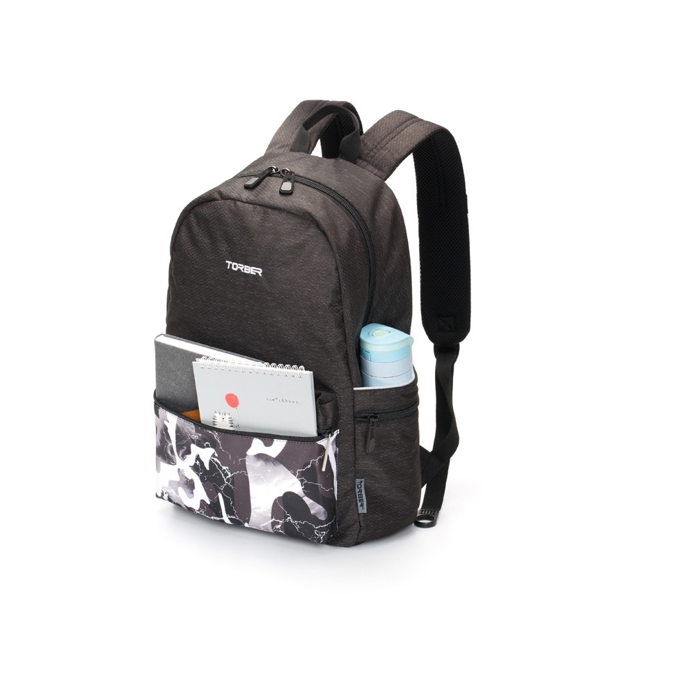 Технические характеристики Рюкзак TORBER ГРАФФИТИ, серый с карманом черно-белого цвета, полиэстер, 44 х 31 х 18 см