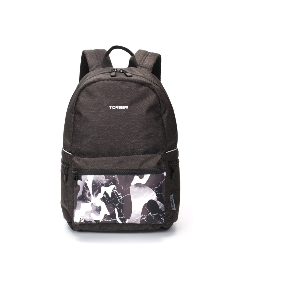 Рюкзак TORBER ГРАФФИТИ, серый с карманом черно-белого цвета, полиэстер, 44 х 31 х 18 см