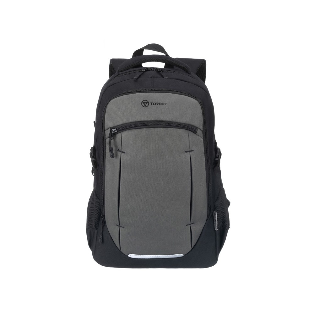 Рюкзак TORBER КЛАСС, чёрно-серый, 46 x 32 x 18 см + Мешок для сменной обуви в подарок!