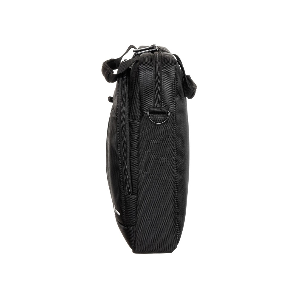 Сумка выполнена в чёрном цвете с красным акцентом, оснащена двумя внешними карманами на молнии, а также регулируемым наплечным ремнем, который позволяет подобрать оптимальную высоту для носки в соответствии с индивидуальными предпочтениями. Для удобной транспортировки предусмотрена эргономичная ручка. В основном отделении имеется мягкий карман для планшета и сетчатый карман на молнии.