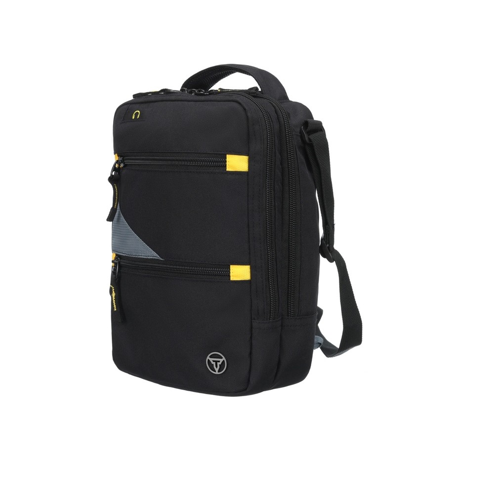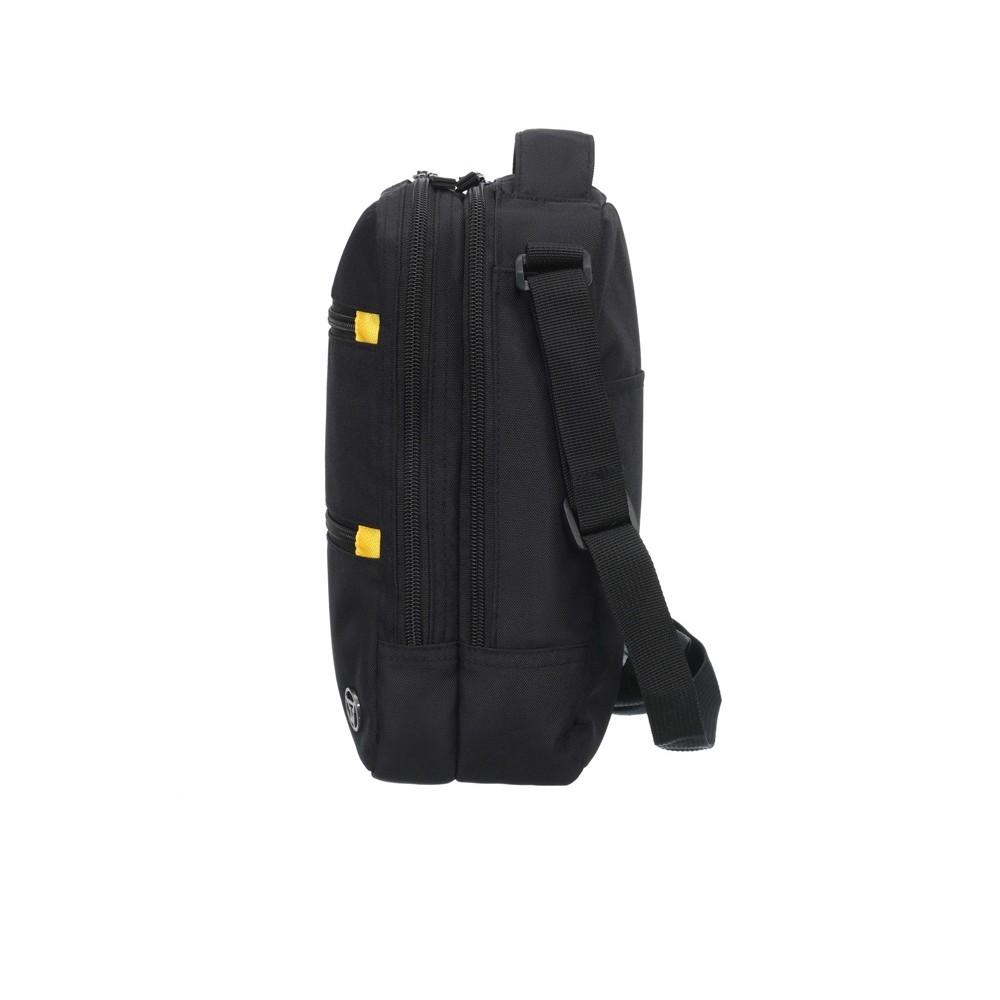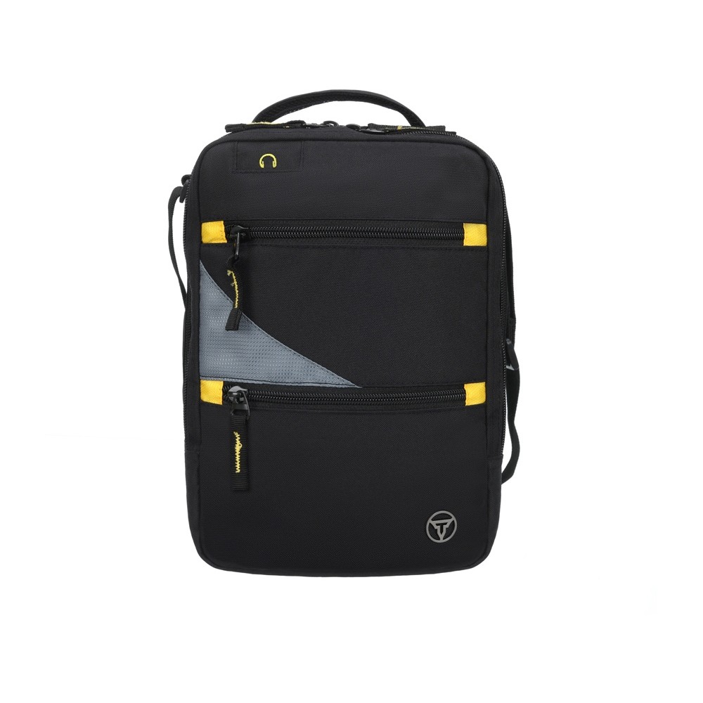 Сумка через плечо TORBER предназначена для безопасной транспортировки деловой документации и электронных гаджетов. Сумка в чёрном цвете с серыми и желтыми акцентами элегантно смотрится в городских условиях.