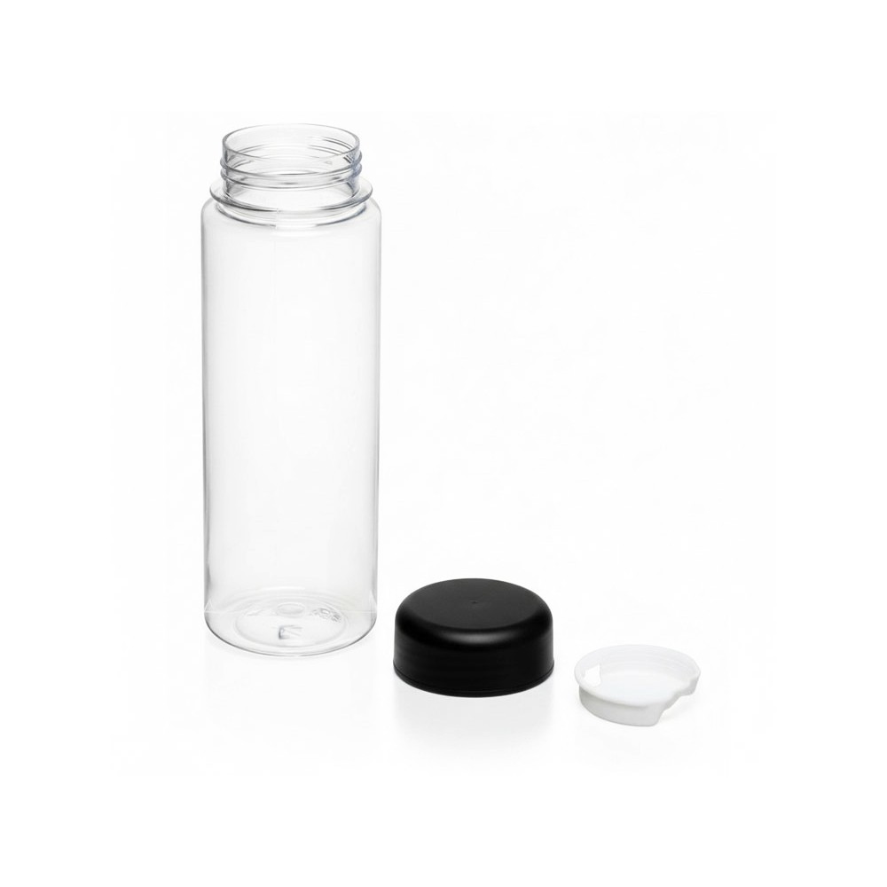 Лаконичный внешний вид позволяет нанести на аксессуар логотип компании. Прозрачный корпус дает возможность контролировать количество содержимого. Благодаря съемному фильтру в воду можно добавлять лимон, мяту и фрукты. Силиконовое кольцо предотвращает протекание, а крышка надежно закрывает бутылку.