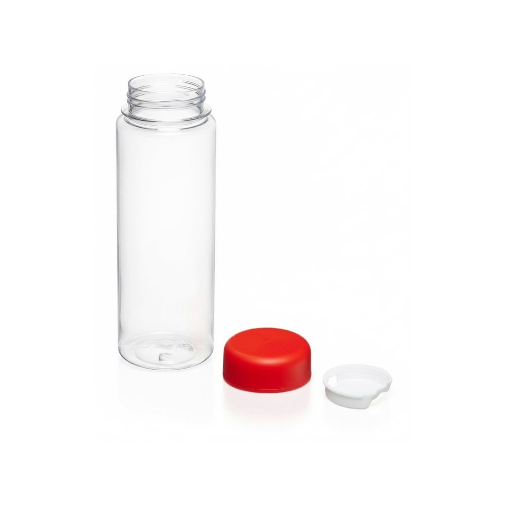 Лаконичный внешний вид позволяет нанести на аксессуар логотип компании. Прозрачный корпус дает возможность контролировать количество содержимого. Благодаря съемному фильтру в воду можно добавлять лимон, мяту и фрукты. Силиконовое кольцо предотвращает протекание, а крышка надежно закрывает бутылку.