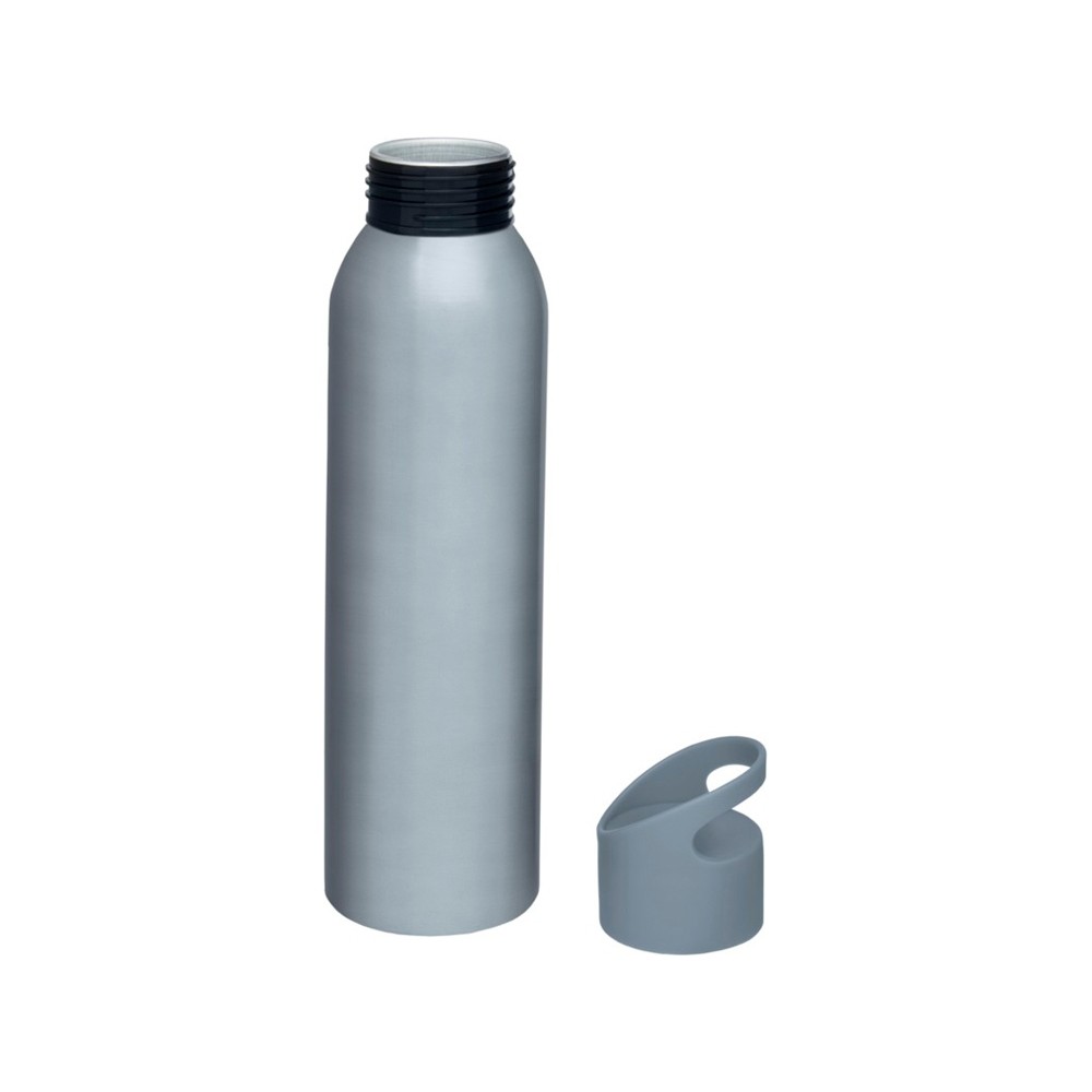 Алюминиевая бутылка с одинарными стенками и съемной крышкой. На крышке есть ручка для удобной переноски. Без содержания БФА. Объем 650 мл.