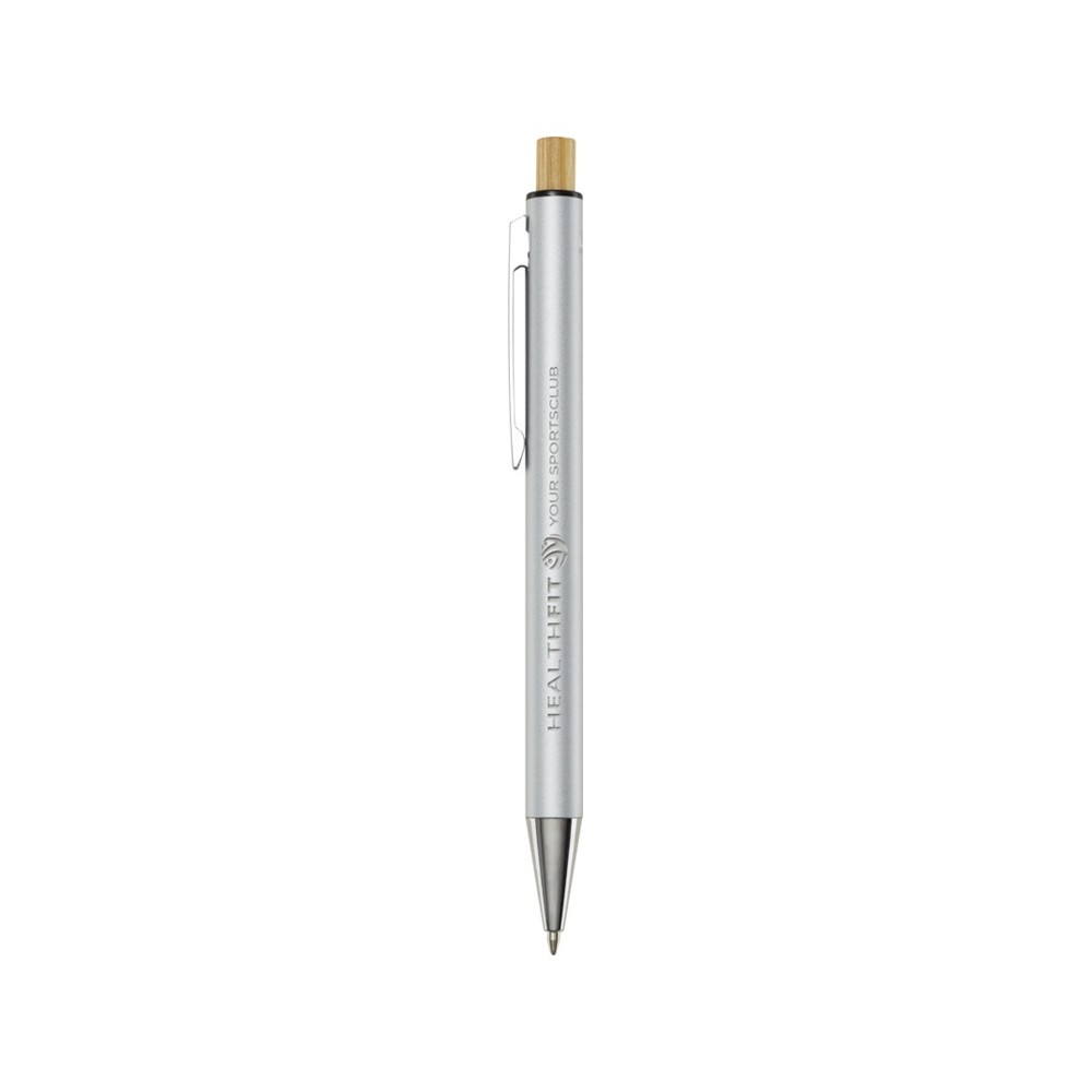 Шариковая ручка Cyrus изготовлена из переработанного алюминия, что требует меньше энергии, чем производство алюминия из сырья. Это также уменьшает количество отходов на свалках и помогает сохранять природные ресурсы для сокращения выбросов парниковых газов. Нажимная кнопка изготовлена из бамбука. Цвет чернил: черный. Длина непрерывной линии: 800 метров. Размер пера: 1,00 мм. Recycled Aluminium.