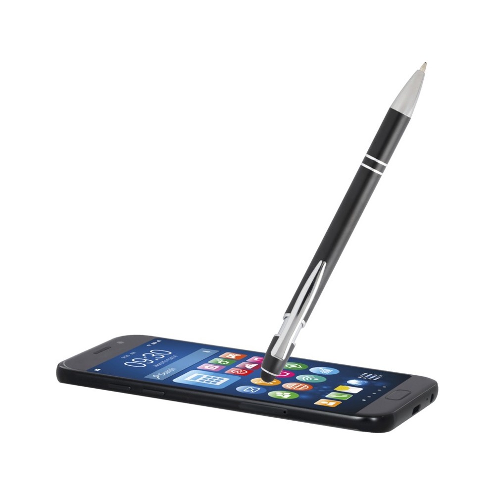 Шариковая ручка Kish с серебряным покрытием имеет корпус из переработанного алюминия и сенсорный стилус из силикона. Переработанный алюминий уменьшает количество отходов на свалках и помогает сохранять природные ресурсы для сокращения выбросов парниковых газов. Цвет чернил: синий. Длина непрерывной линии: 800 метров. Размер пера: 1,0 мм. Recycled Aluminium.