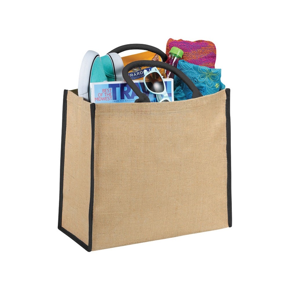 Сумка для покупок. Открытое основное отделение на липучке. Двойные ручки высотой 17 см. Джут.
