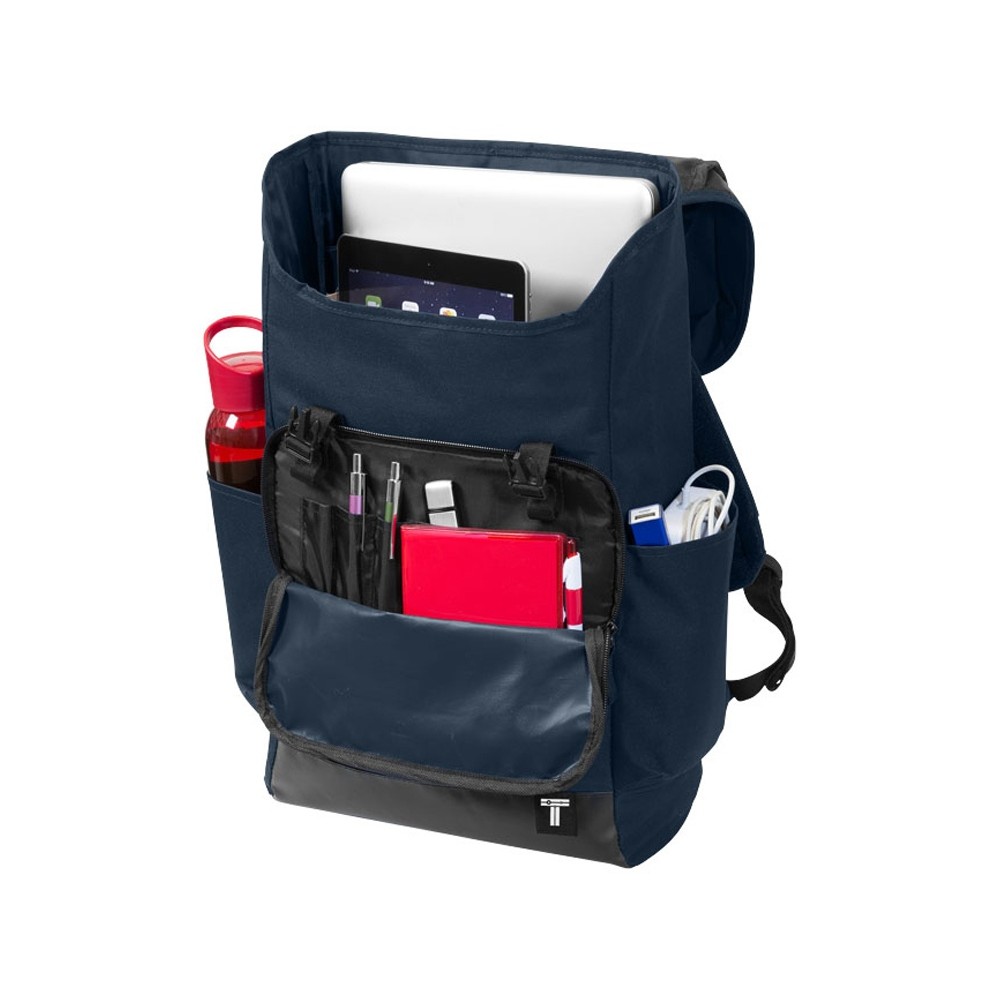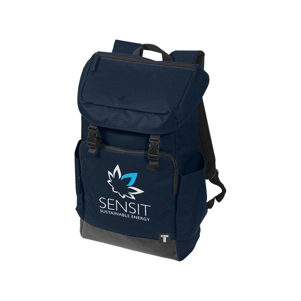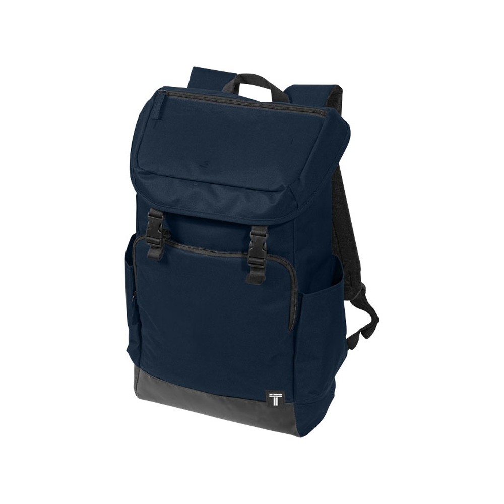 Рюкзак для ноутбука 15,6". Рюкзак для ноутбука 15,6" с дном и з тарпаулина, для легкой очистки. Большой передний карман на молнии для мелочей. Боковой карман для бутылки, застежки клапана можно использовать для фиксации зонтика или дождевика. 300D Полиэстер и тарпаулин.