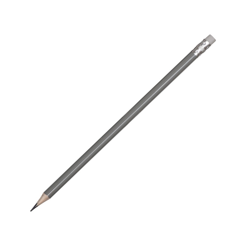 Трехгранный чернографитовый карандаш с ластиком будет очень полезным и недорогим подарком. Карандаш заточен.