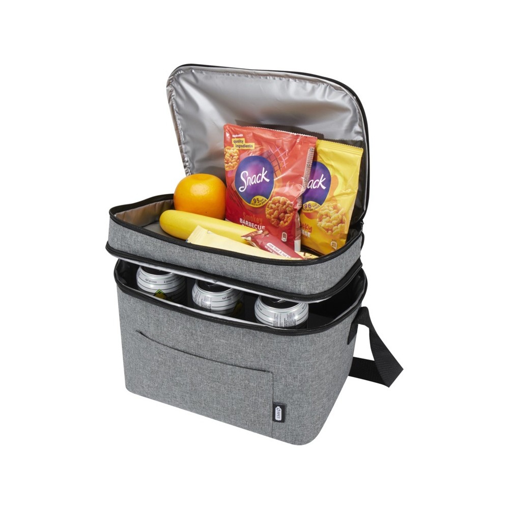 Сумка-холодильник Tundra имеет верхнее отделение на молнии, а также просторное основное отделение и регулируемые плечевые ремни. Изготовлено из подкладки PEVA и переработанного полиэстера, сертифицированного согласно GRS. Объем: 13 литр. GRS certified recycled polyester.