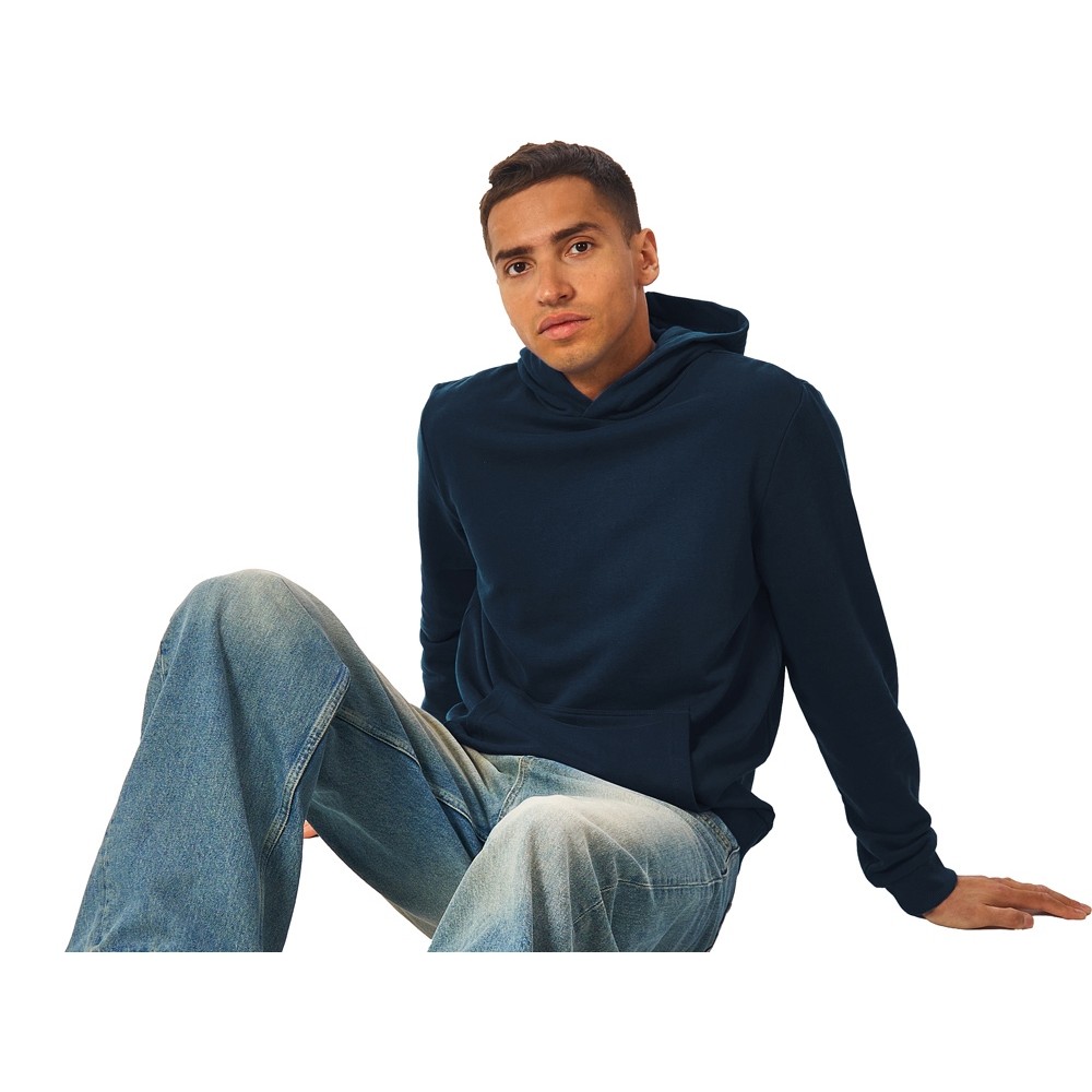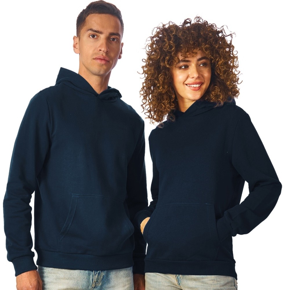 Толстовка с капюшоном (худи) из плотного хлопкового 3х ниточного футера. В капюшоне подкладка в тон, а горловина спинки дополнительно укреплена тесьмой с выделкой «елочка». Капюшон без шнурков – ничего не отвлекает от вашего брендирования. Манжеты и низ изделия отделаны рибом 2х2. Глубокий комфортный карман кенгуру на полочке. Полотно из утяжеленного хлопкового футера внутри с петельками без начеса.