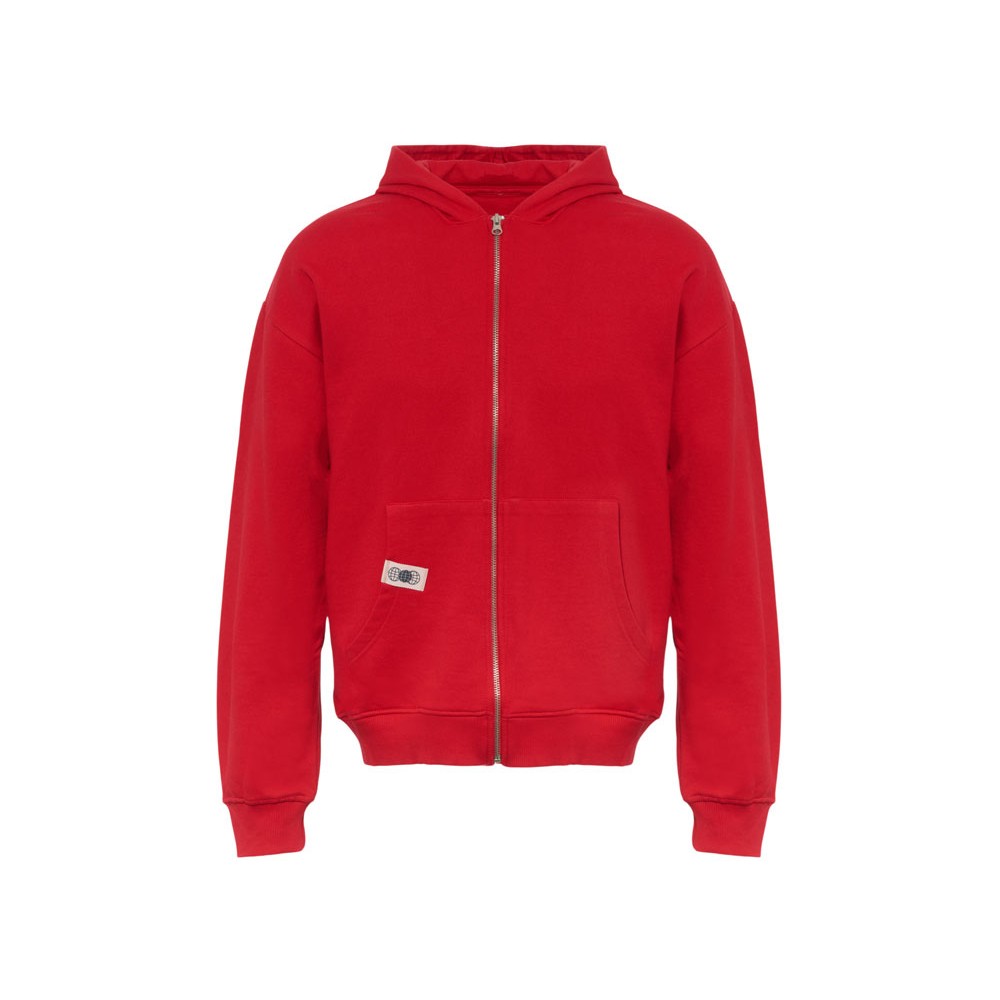 Толстовка оверсайз с капюшоном на молнии «Monaco», красный, лейбл, бренд тайп и термотрансфер