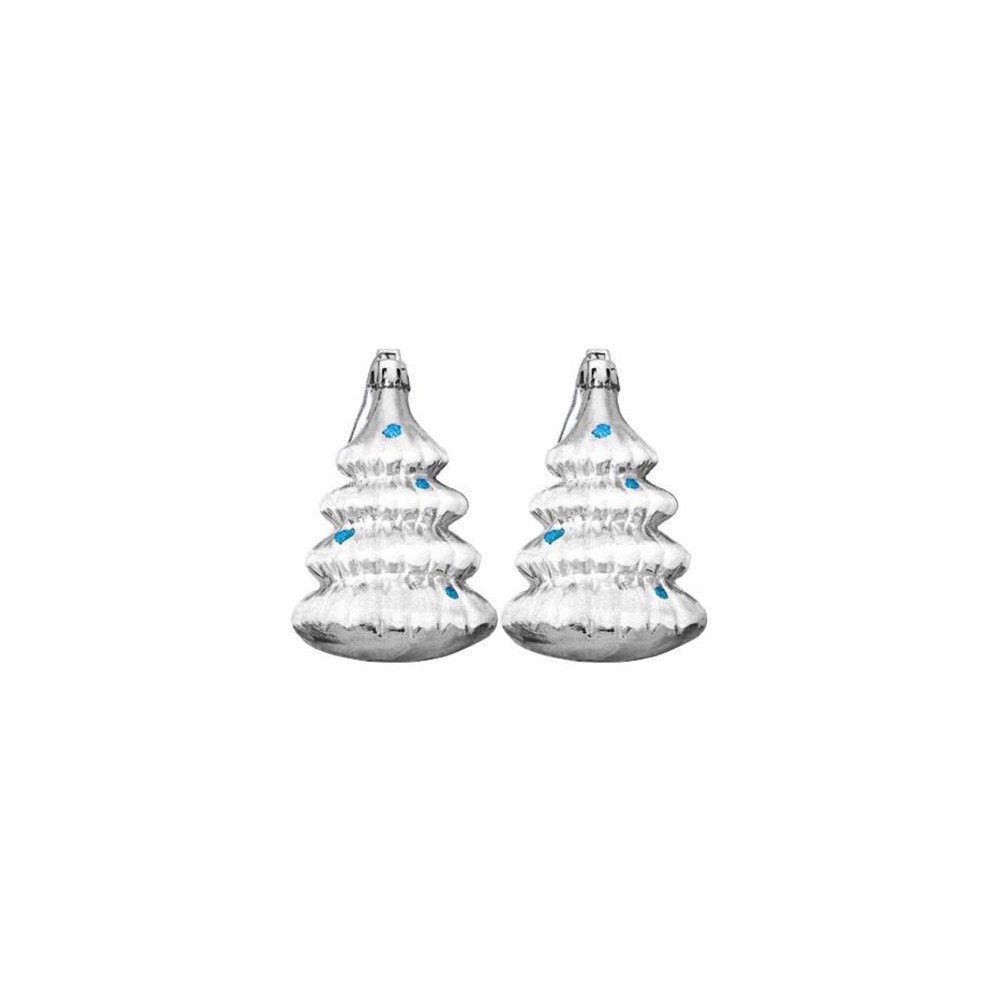 Новогоднее подвесное украшение Ёлочки в серебре из полистирола, набор из 2 шт / 8,6x5,8x3,2см