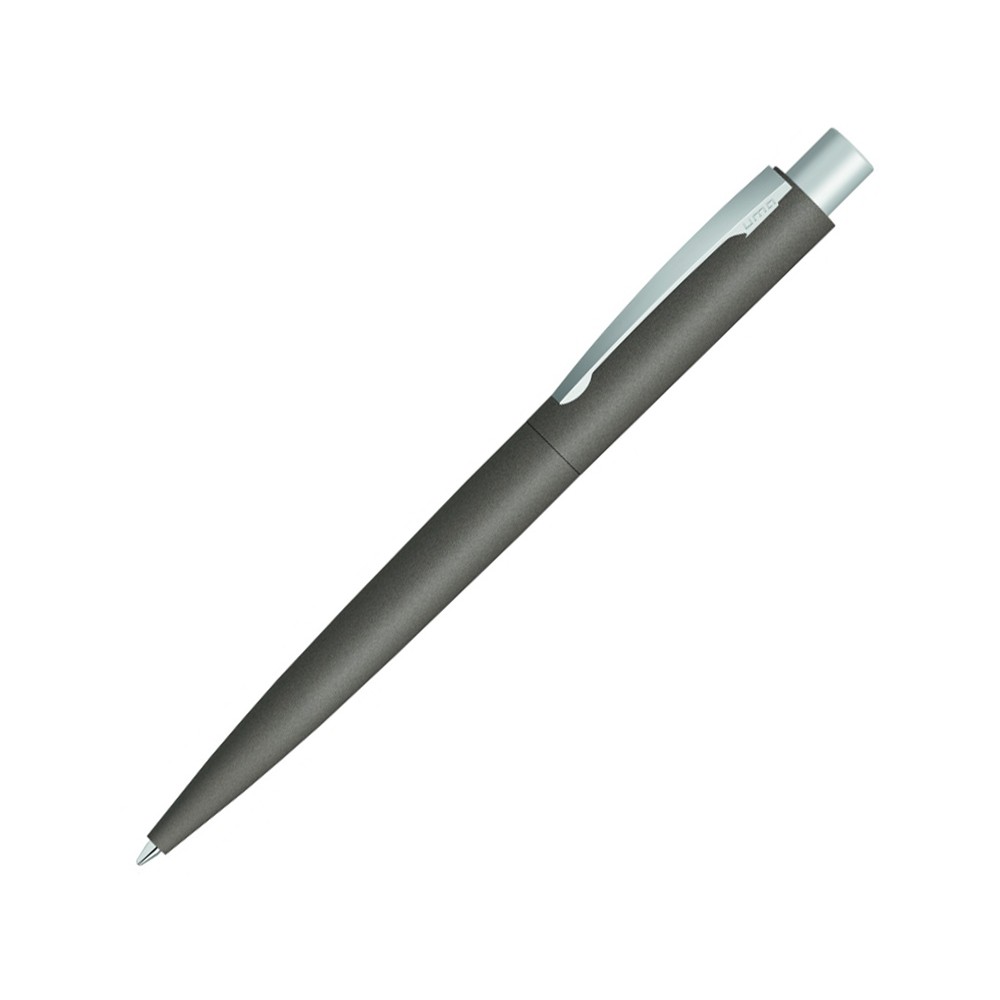 Автоматическая шариковая ручка с поверхностью, имитирующей бетон или камень. Металлический клип и нажимная кнопка матовые хромированные.
