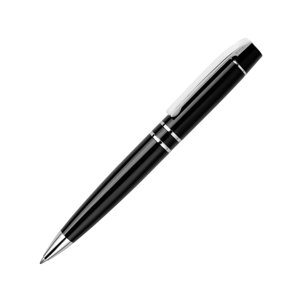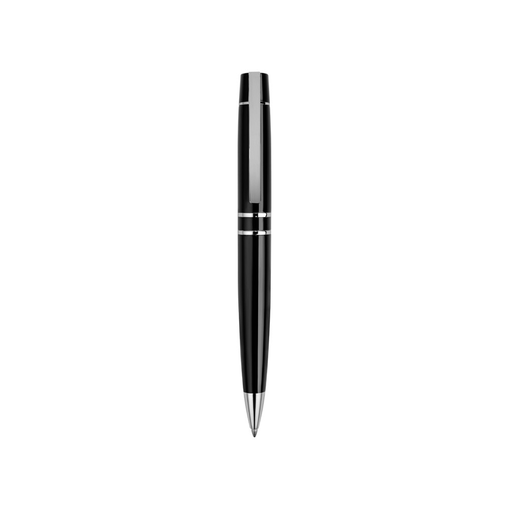 Металлическая шариковая ручка с поворотным механизмом и пружинным клипом. Фурнитура с глянцевой хромированной отделкой.