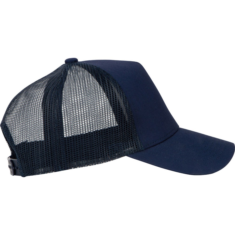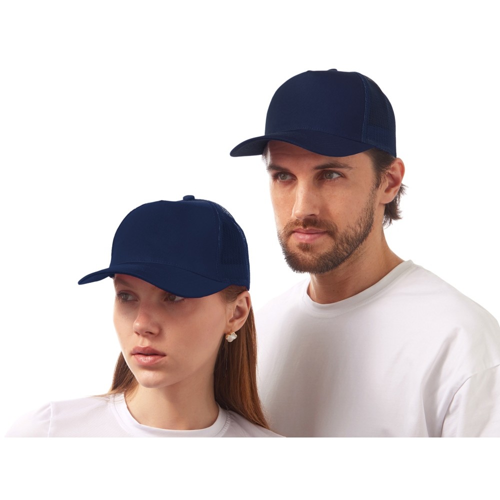 Пяти панельная бейсболка с передней частью из хлопка для комфорта головы и лба. Задняя часть из пластиковой сетки, которая отвечает за циркуляцию воздуха и обеспечивает изделию износостойкость. Для подгонки по размеру головы — пластиковая застежка.