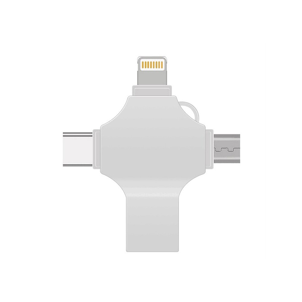 USB-флешка на 64 Гб 4 в 1 поворотный механизм, c дополнительными разъемами MicroUSB, TypeC и Lightning, серебристый