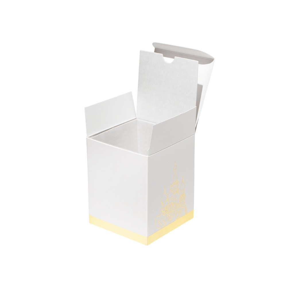 Коллекция аромасвечей “Exclusive” является уникальной не только из-за ароматов коллекции, но и благодаря тщательно разработанному дизайну упаковки, которая является напоминанием о том, что бренд Lights of Moscow - это ручное российское производство в самом центре Москвы. Белая коробка оформлена ярким золотым фольгированием, на левой стороне которой изображен Храм Василия Блаженного - одна из главных достопримечательностей на Красной площади в Москве.