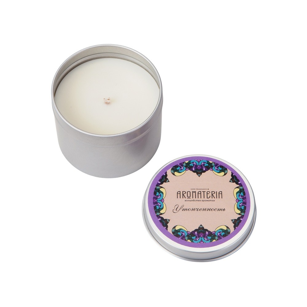 Ароматическая свеча «Утонченность» – это бодрящие ноты цитрусовых, фиалки и орхидеи, раскрывающиеся базовыми аккордами сандала и ванили.