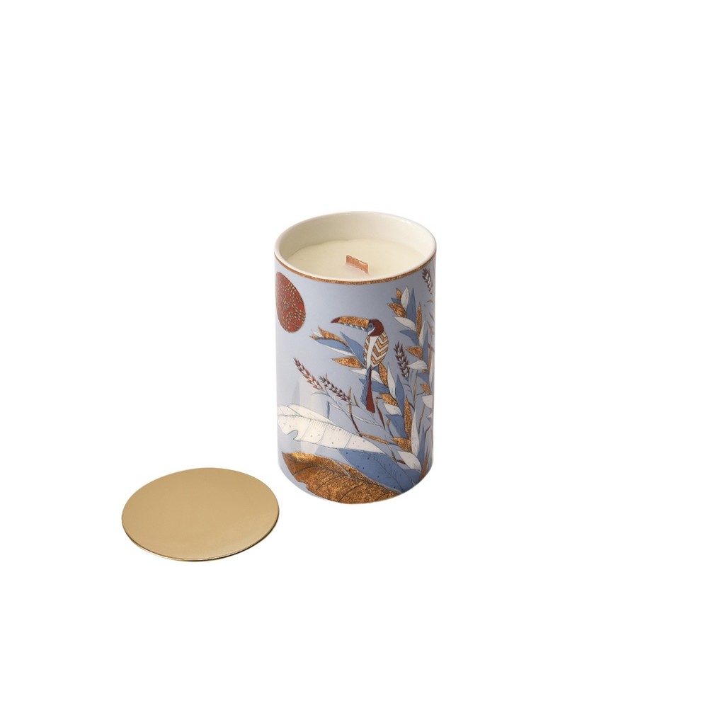 Материал товара Китайский фарфор, соевый воск, деревянный фитиль, крышка- нержавеющая сталь с позолоченным покрытием, выполненное методом гальванизации