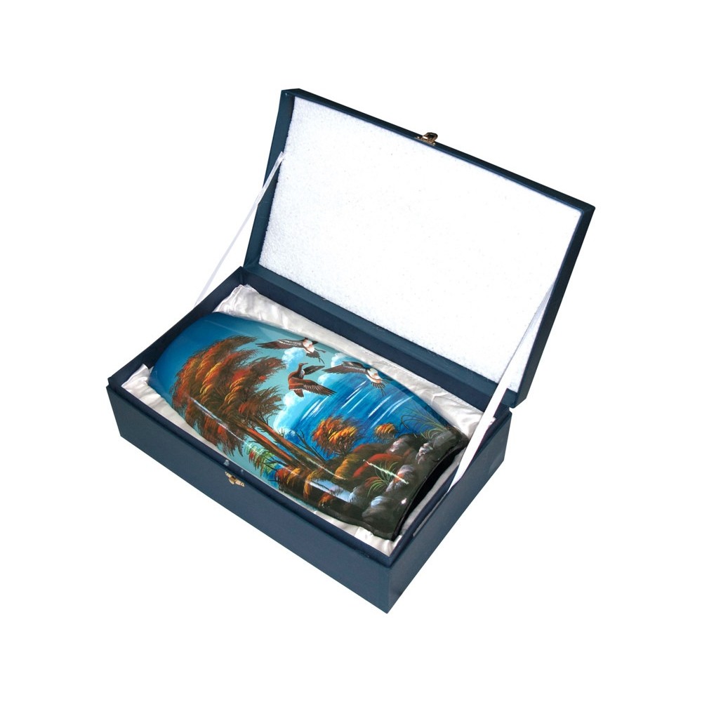 Отличная ваза поможет внести яркое пятно в интерьер любого помещения. Ваза «Утиная охота» с изображением диких уток выполнена из качественной керамики и раскрашена сочными цветами. Ваза станет превосходным подарком для заядлых охотников.