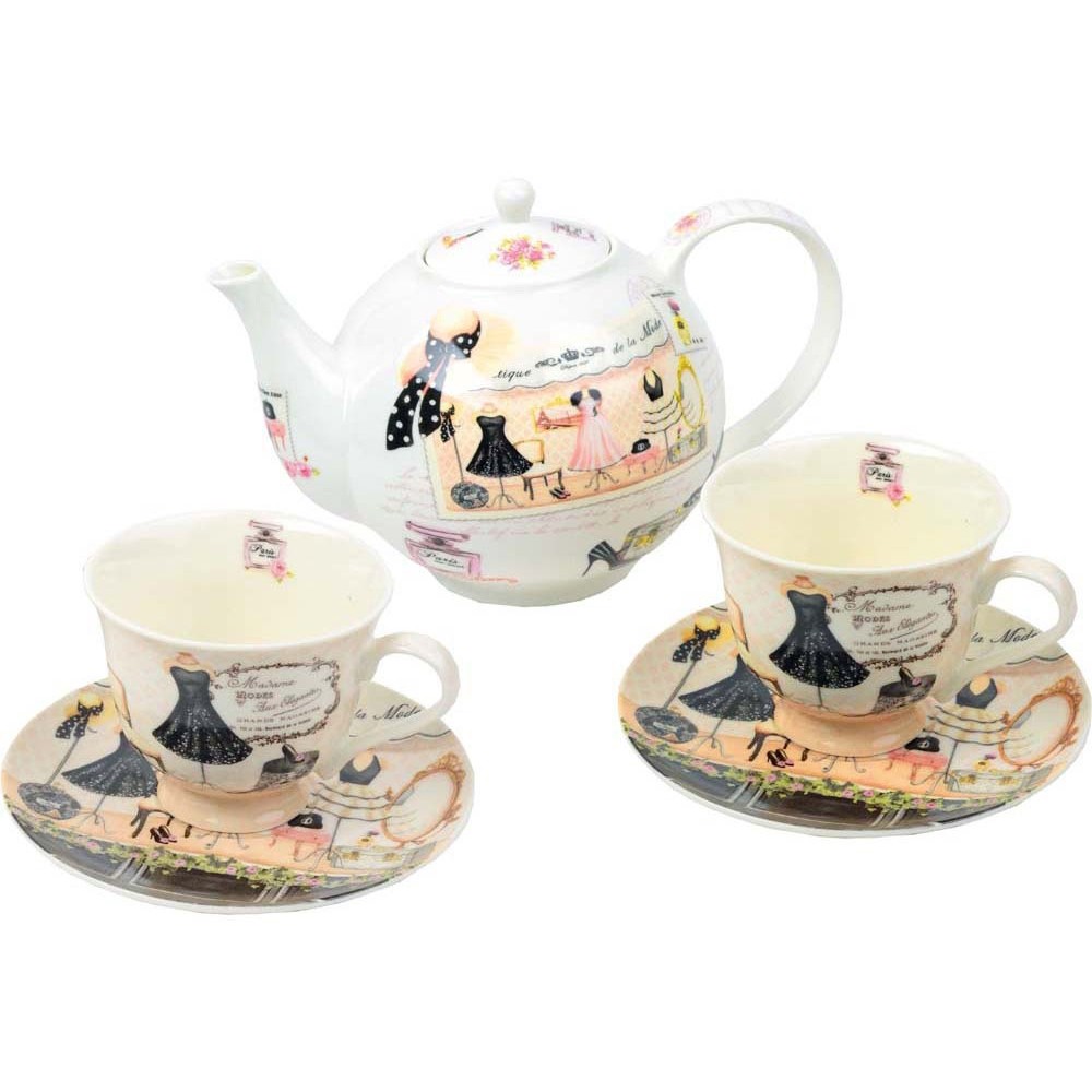 Оригинальный чайный сервиз рассчитан на две персоны. В набор входят пара чашек, блюдец и небольшой чайник. Чайный сервиз станет непременным атрибутом женских посиделок. Упакованный в симпатичную подарочную коробку, сервиз непременно понравится прекрасным леди.