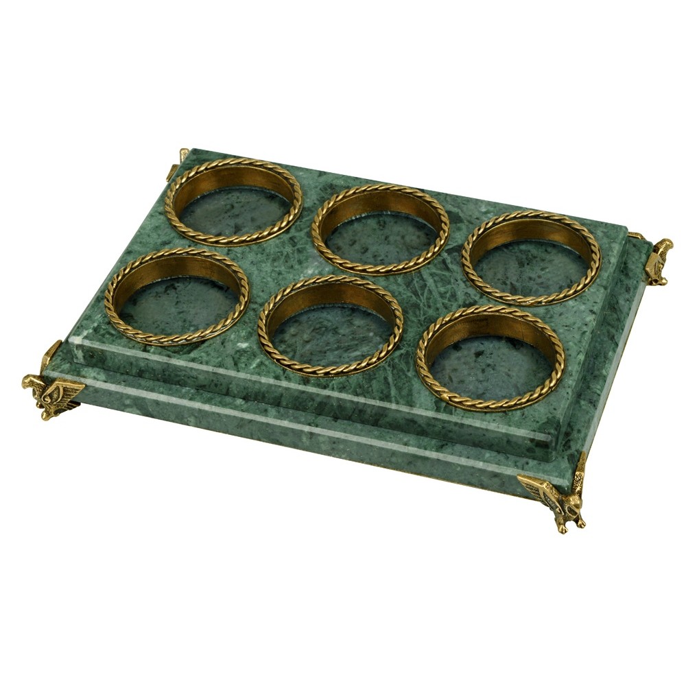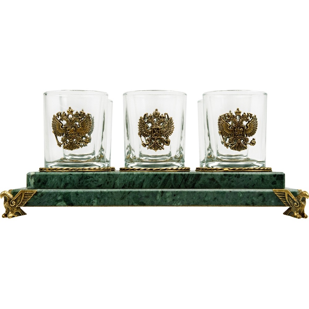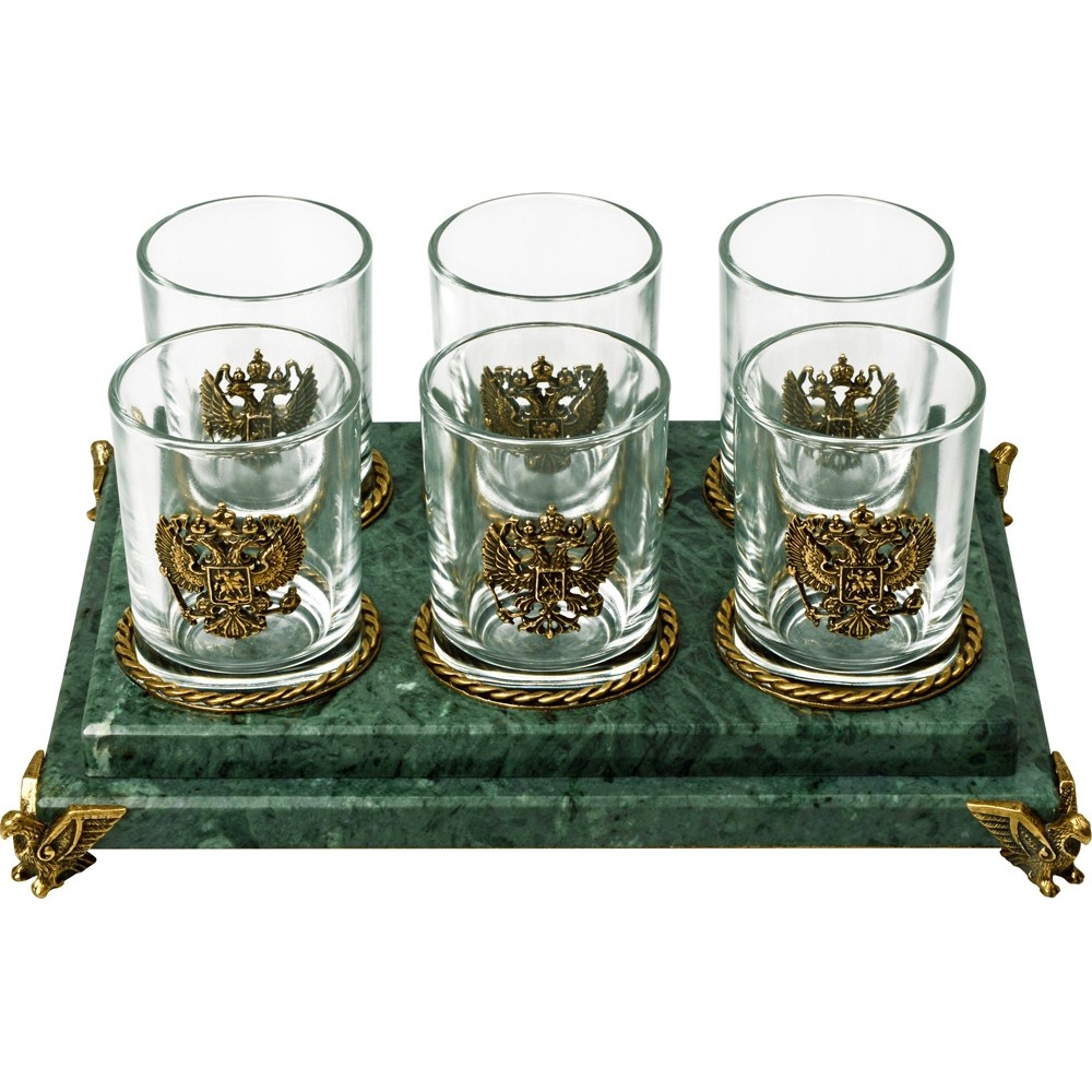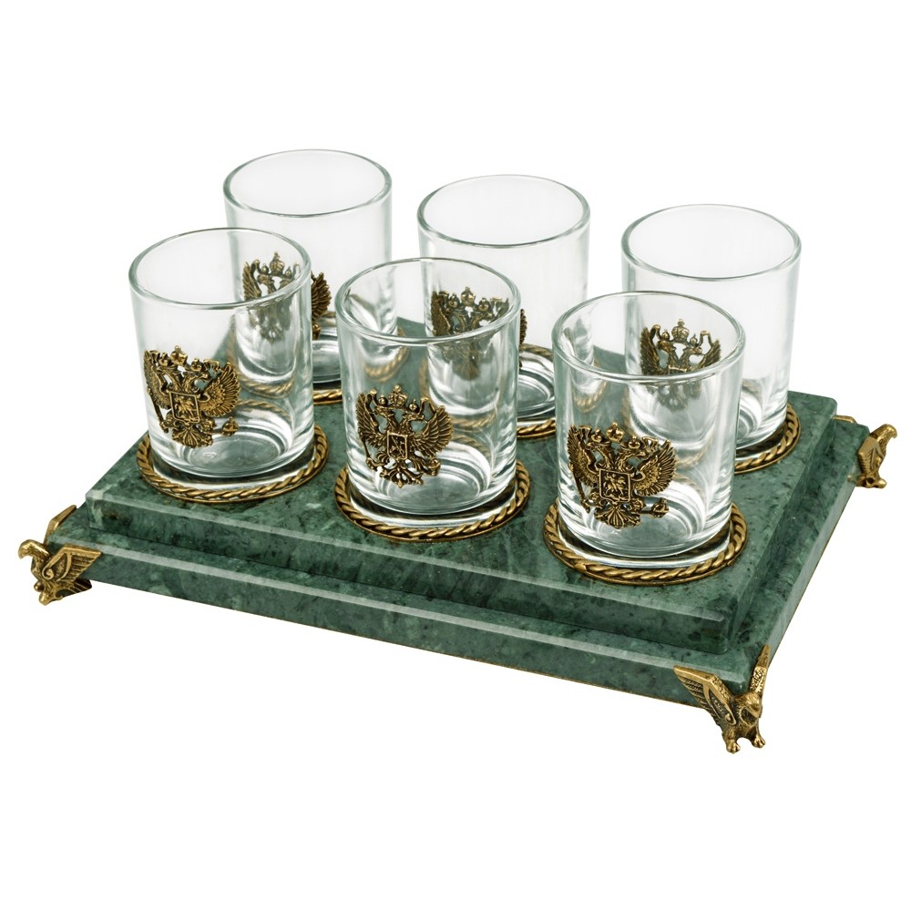 Вес2504 Комплектностьрюмка 70мл- 6шт, подставка Материал товаранатуральный камень- змеевик/стекло/бронза