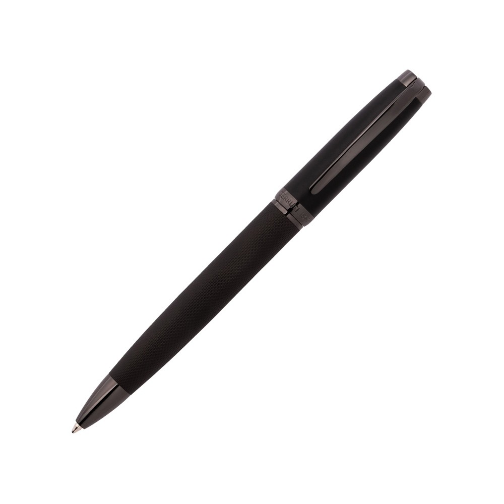 - шариковая авторучка в матово-чёрном корпусе с отделкой из оружейного металла с поворотным механизмом,