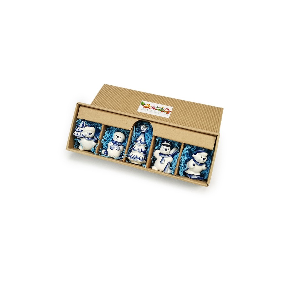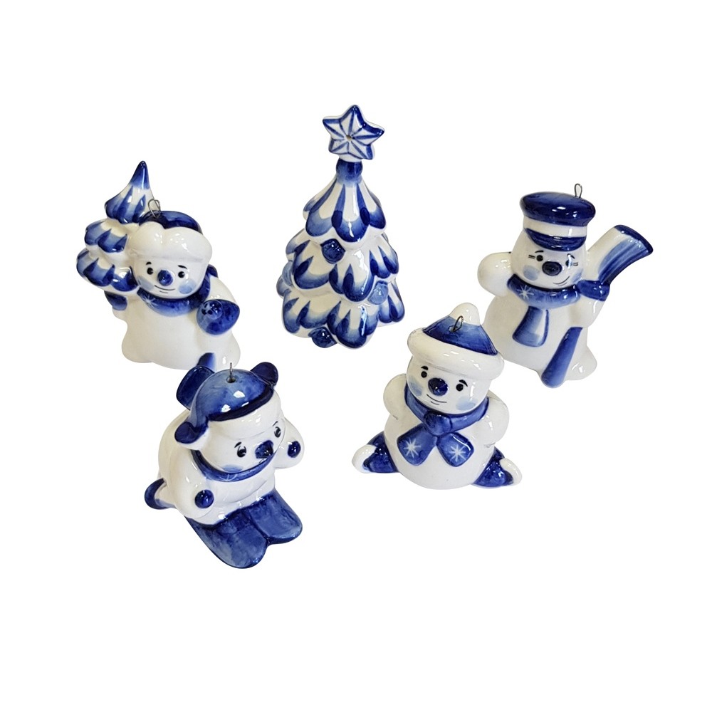 • Набор елочных игрушек Снеговички кобальтовая роспись