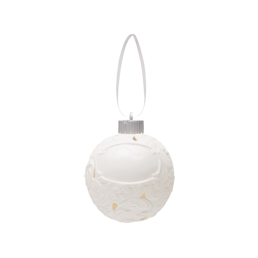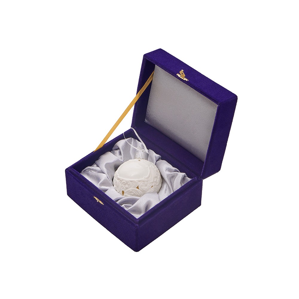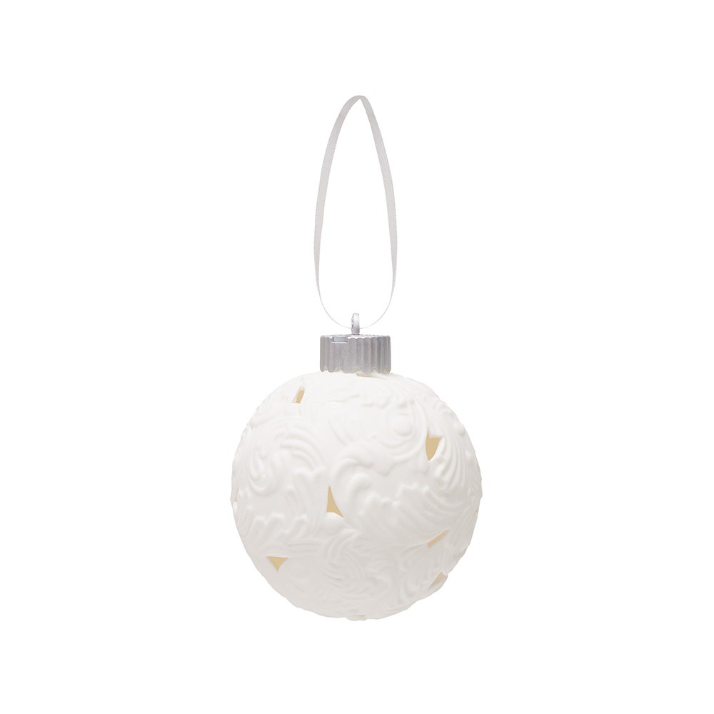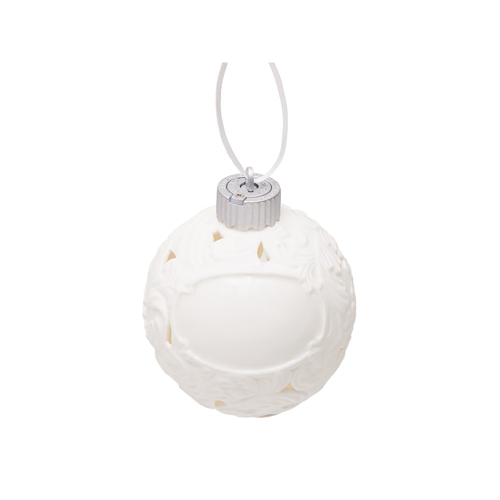 Фарфоровый шар с росписью в технике бисквит. Игрушка ручной работы. Матовая, бархатистая поверхность и пастельные тона создают утонченный образ старинного зимнего праздника. Это воплощение изящества и ностальгии. Шар светится изнутри мягким и ровным светом, наполняя пространство атмосферой спокойствия и волшебства.