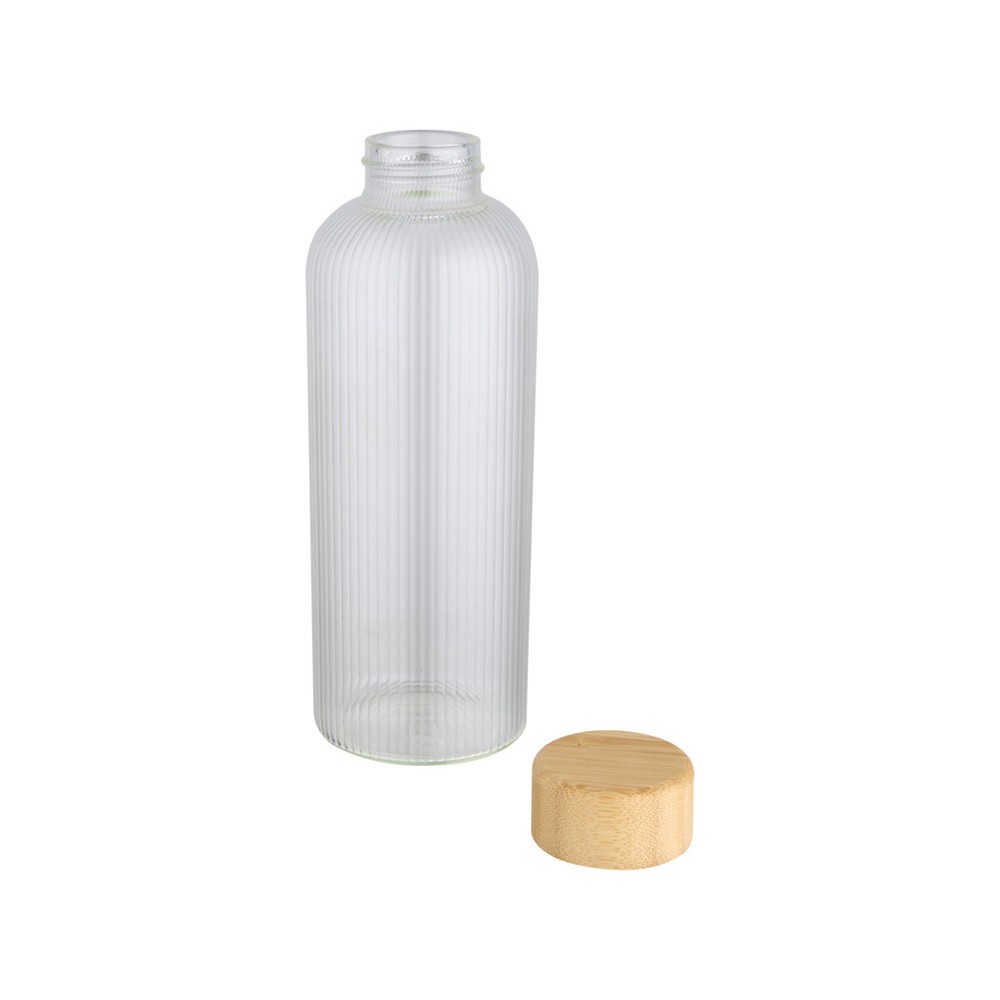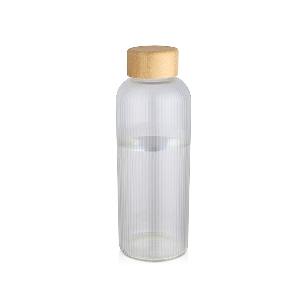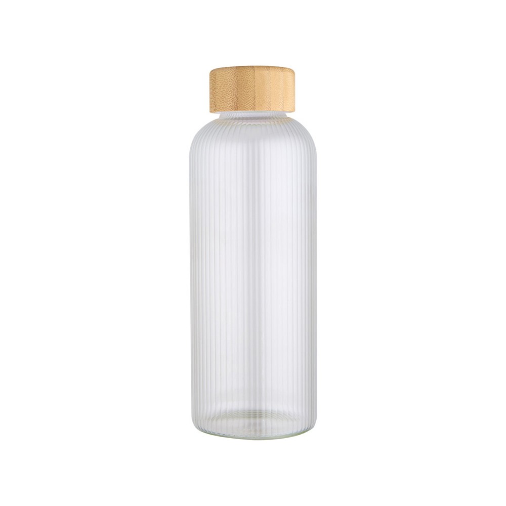 Бутылка из боросиликатного стекла с бамбуковой крышкой. Бутылка имеет уникальный ребристый дизайн внутри и гладкую внешнюю поверхность, идеально подходящую для печати логотипа. Используемый бамбук выращивается в экологически чистых условиях с соблюдением принципов экологической и социальной ответственности. Поставляется в подарочной коробке из переработанного картона. Объем: 650 мл. 90% Боросиликатное стекло, 10% Бамбуковое дерево. упаковка FSC Mix 100% P5 CU-COC-877277. FSC Mix Credit N5 CU-COC-877277.