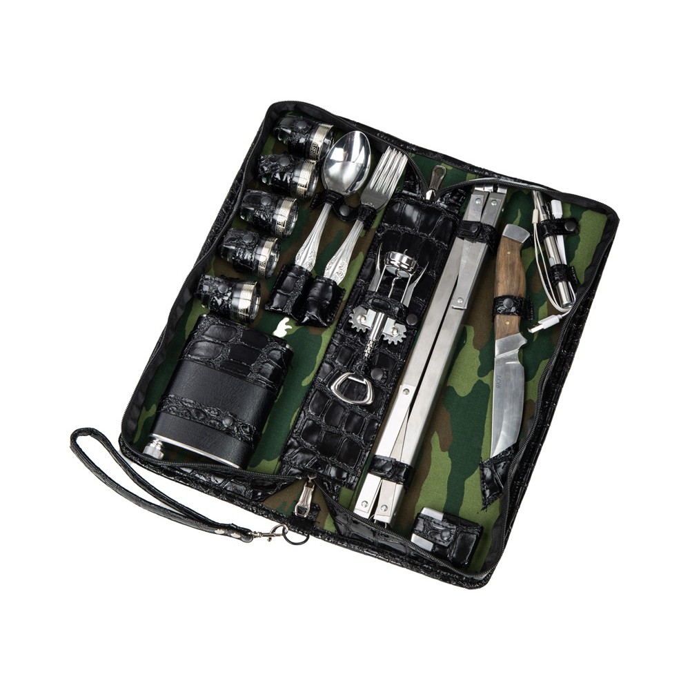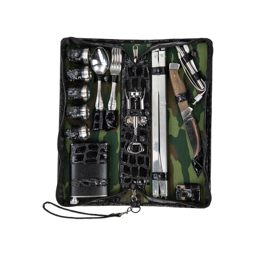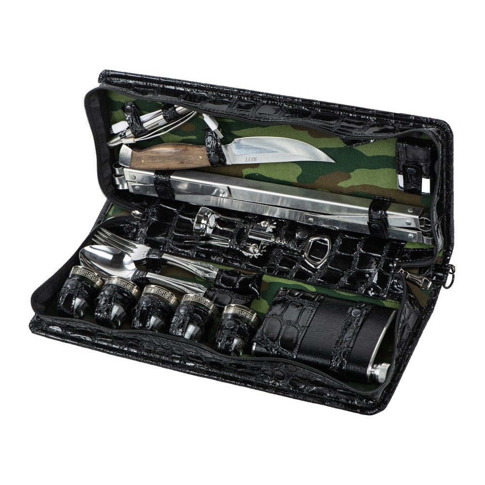 Оригинальный дорожный набор на 5 персон в барсетке с удобным ремешком для переноски.