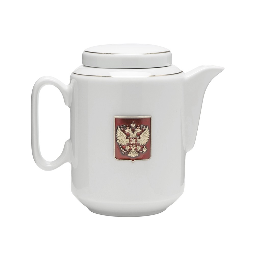 Чайный набор с подстаканником и фарфоровым чайником «ЭГОИСТ-Л», золотистый/белый