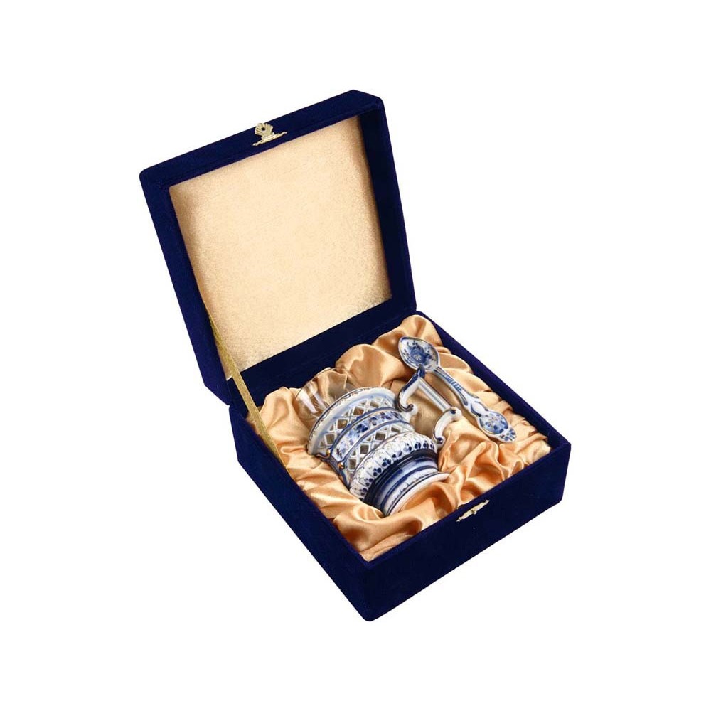 Набор: стакан с подстаканником и ложкой, белый/синий 6800 ₽