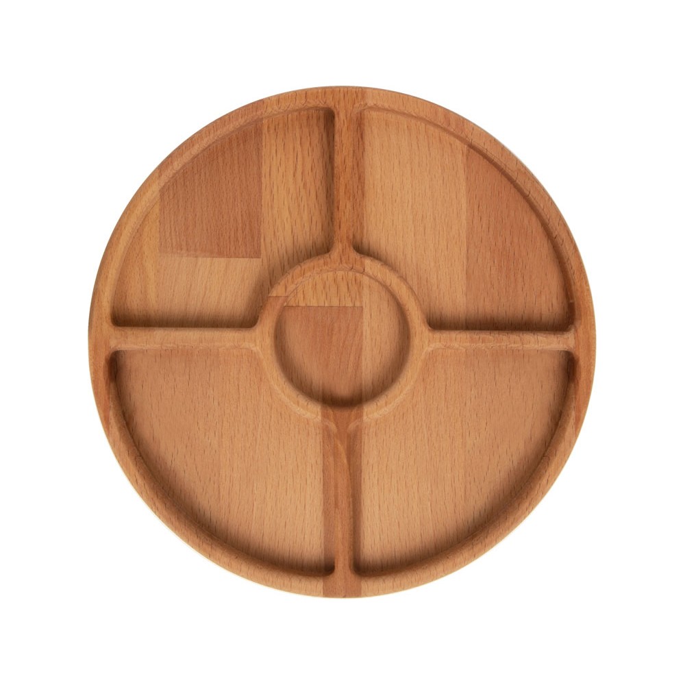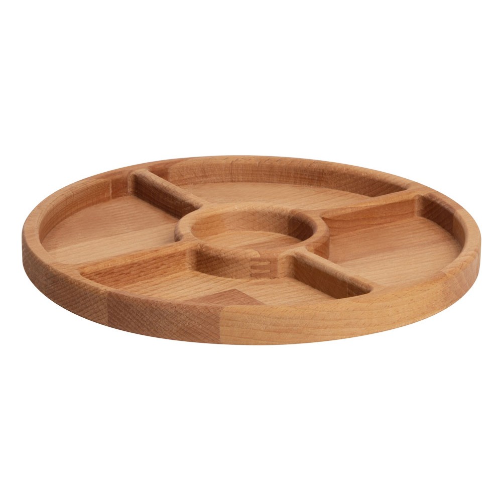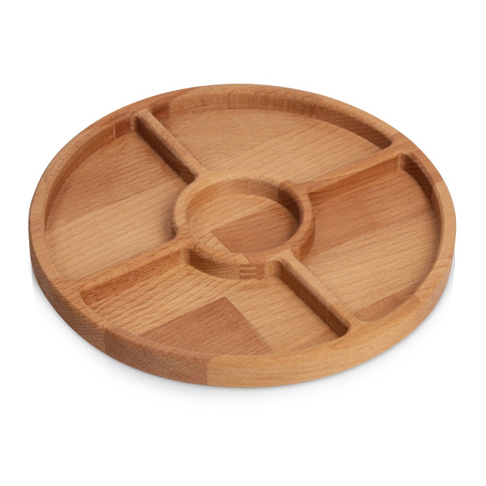 Менажница из натурального бука предназначена для красивой подачи закусок. В центр можно установить соусницу (не входит в комплект).