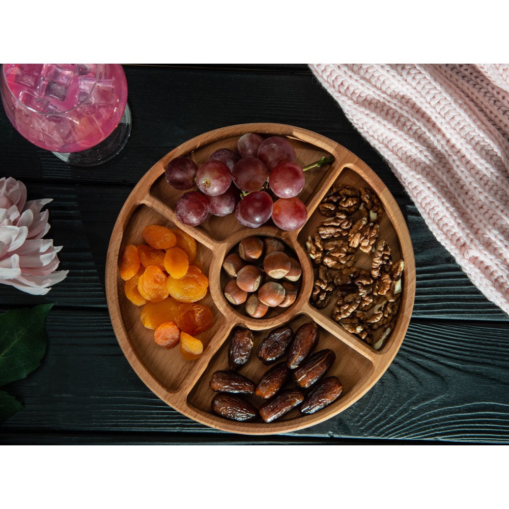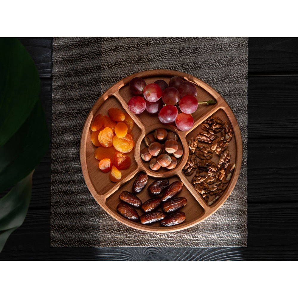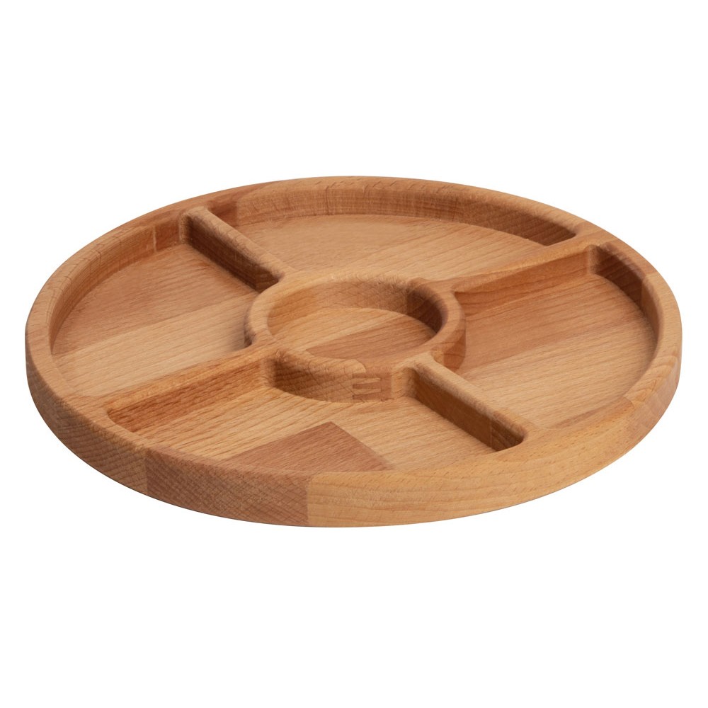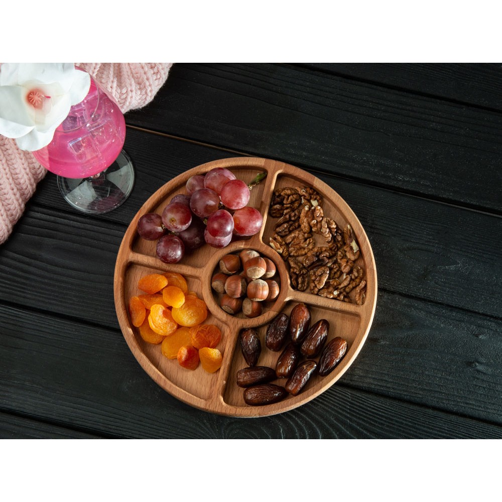 Менажница из натурального бука предназначена для красивой подачи закусок. В центр можно установить соусницу (не входит в комплект).